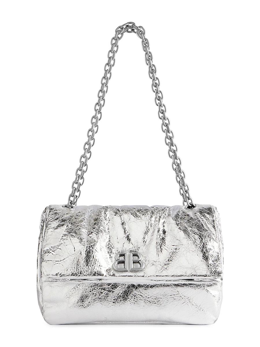 Metallized arena calfskin Aged-silver BB logo hardware Flap closure 1 pocket at front 1 inner patch pocket Cotton canvas lining Wipe with a soft cloth Made in Italy SIZE Dimensions: L11 x H7.1 x W3.9 in. Shoulder chain strap (drop: 8.8 in.). Lsd Handbags - Balenciaga > Balenciaga > Saks Fifth Avenue > Barneys. Balenciaga. Color: Silver.