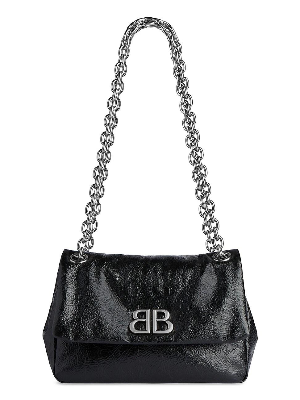 Arena calfskin Magnet flap closure Aged-silver Monaco BB logo hardware Side snaps 1 pocket at front 1 inner zipped pocket Nylon lining Made in Italy SIZE Dimensions: L9.8 x H8.7 x W4.7 in. Shoulder chain strap (drop: 10.2 in.). Lsd Handbags - Balenciaga > Balenciaga > Saks Fifth Avenue > Barneys. Balenciaga. Color: Black.
