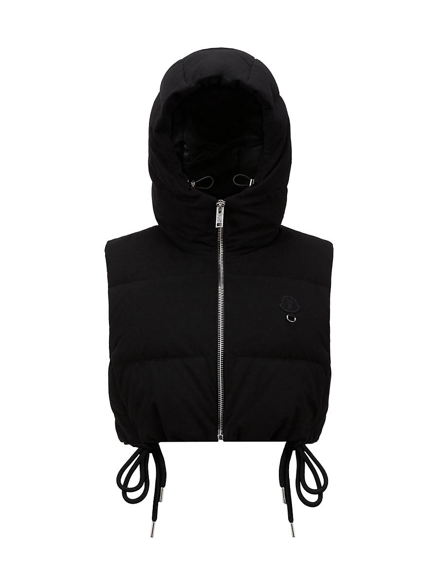 Infusing the Alex puffer vest with a futuristic feel, the Moncler x Willow Smith design is defined by metal accents and a cropped silhouette. Made from technical fleece Lining in longue saison Down-filled Adjustable hood with nylon twill lining Zipper closure Pockets with snap button closure Hem with drawstring tie Eyelet details Embroidered logo patch with ring Exterior: 67% polyester, 29% viscose / rayon, 4% elastane / spandex; lining: 100% polyester; hood lining: 100% polyamide / nylon; padding: 90% down, 10% feather Hand wash; do not bleach; do not tumble dry; ironing maximum temperature 110c - without steam; do not dry clean; do not professionally wet clean; flat dry in the shade; wash separately; do not soak; it is advisable to wash and iron the garment on reverse.; do not twist or wring; protect trims while washing Made in Italy. Lsd Mens - Moncler > Moncler Genius > Saks Fifth Avenue > Barneys. Moncler Genius. Color: Black. Size: Large.