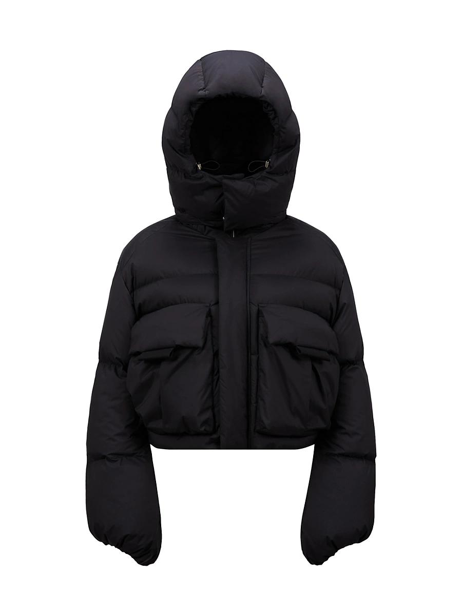 Defined by striking eyelet details, the Moncler x Willow Smith Kar puffer jacket showcases a futuristic aesthetic. Made from lightweight nylon Lining in longue saison Down-filled Removable and adjustable hood with lightweight nylon lining Zipper and snap button closure Pockets with snap button closure Hem with drawstring tie Eyelet details Embroidered logo patch with ring Exterior: 100% polyamide / nylon; lining: 100% polyester; hood lining: 100% polyamide / nylon; padding: 90% down, 10% feather; details padding: 100% polyester Wash max 30c - very mild process; do not bleach; do not tumble dry; ironing maximum temperature 110c - without steam; do not dry clean; professional wet cleaning - very mild process; flat dry in the shade; wash separately; it is advisable to wash and iron the garment on reverse.; protect trims while washing; iron with a cloth between Made in Italy. Lsd Mens - Moncler > Moncler Genius > Saks Fifth Avenue > Barneys. Moncler Genius. Color: Black. Size: XS.