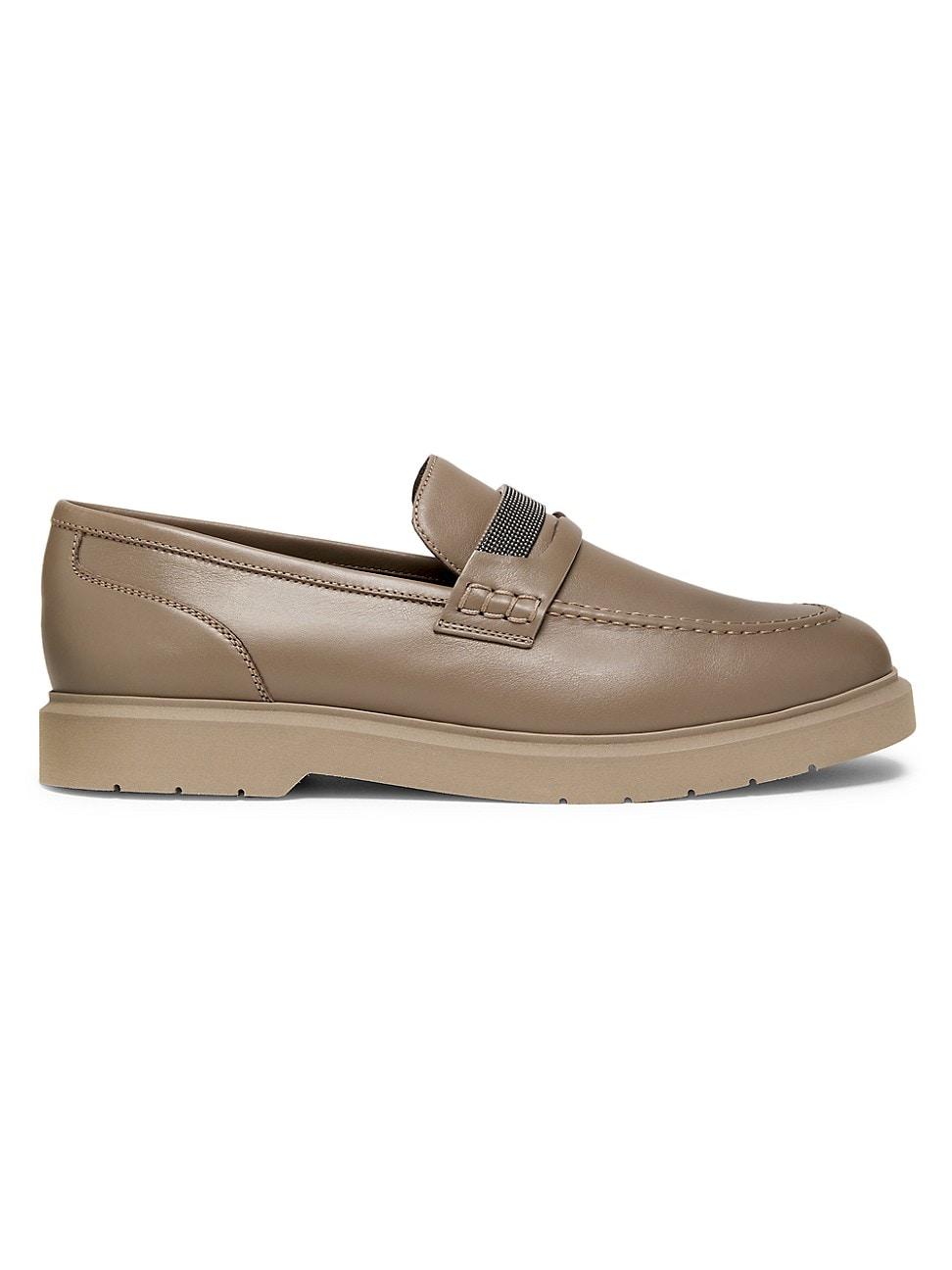 These Brunello Cucinelli penny loafers are meticulously crafted of leather. Made in Italy, the pair showcases the brands signature monili beading for added sparkle. Round toe Slips on Leather upper Leather lining Synthetic sole Made in Italy SIZE Heel: about 1 (25mm) ABOUT THE BRAND Beginning with a focus in masterfully constructed cashmere pieces, Brunello Cucinellis namesake heritage label quickly grew to be synonymous with fine Italian craftsmanship and casual luxury. Every sumptuous piece of knitwear or impeccably tailored separate is made in his studio in Solomeo, a 14th-century Italian village he worked to restore and rebuild. Womens Shoes - Brunello Cucinelli > Brunello Cucinelli > Saks Fifth Avenue > Barneys. Brunello Cucinelli. Color: Ice. Size: 6.
