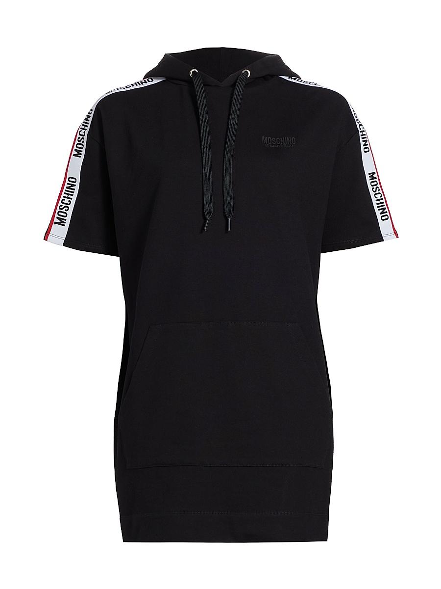 Crafted of a stretch cotton blend, the Mos Under Donna-Velmar minidress is adorned with signature Moschino logo tape detailing. A drawstring hood, kangaroo pocket, and rib-knit trim complete this comfortable piece. Drawstring hood Short sleeves Kangaroo pocket Rib-knit trim Pulls over 95% cotton/ 5% elastane Machine wash Imported SIZE & FIT This style is designed for an oversized fit Measurements are taken from a US size Small Bust, about 44 About 31.5 from shoulder to hem Model measurements: 510 tall Model is wearing a US size Small. Lingerie - Designer Foundations > Moschino > Saks Fifth Avenue > Barneys. Moschino. Color: Black. Size: XL.