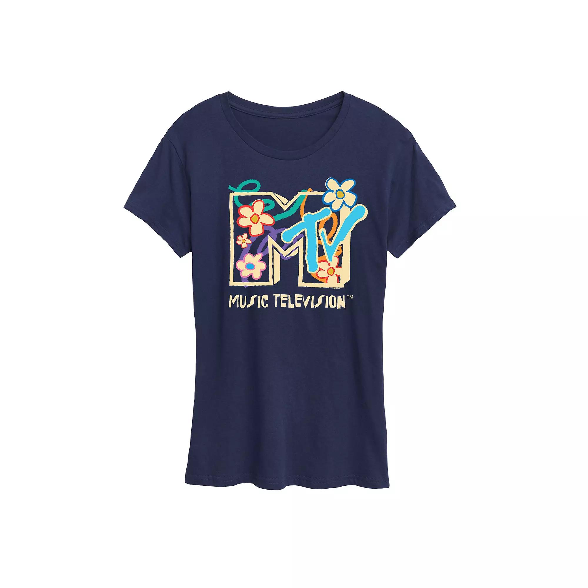 She will love showing off her style with this Womens MTV Drawn Floral Logo Graphic Tee. FEATURES Short sleeves CrewneckFABRIC & CARE Cotton Machine wash Imported Size: Small. Color: Navy. Gender: female. Age Group: adult.