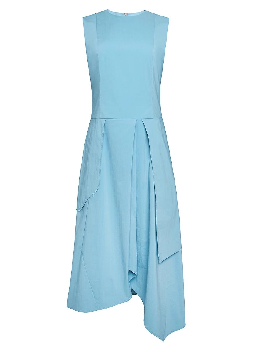 Crafted of a crisp woven cotton blend, this Santorelli midi-dress is defined by a multi-panel asymmetric A-line skirt. Crewneck Sleeveless Back zipper closure 65% cotton/32% nylon/3% spandex Dry clean Imported SIZE & FIT About 47 from shoulder to hem Model measurements: 510 tall Model is wearing a US size 4. Modern Collections - Modern Coll > Santorelli > Saks Fifth Avenue > Barneys. Santorelli. Color: Black. Size: 0.