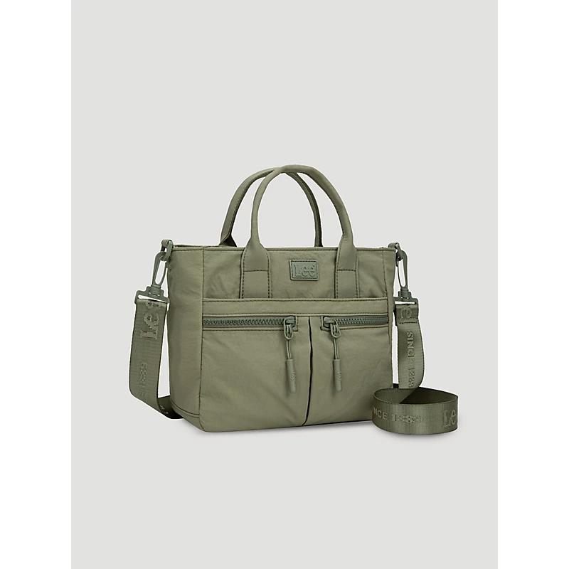 "A smaller tote with a lot of versatility. Designed with three zippered pockets at the front, back and within the body, this bag prioritizes easy access to both your keys, and your lipstick. Finished with a detachable crossbody strap for a different way to wear it and our logo applique, this bag goes with everything. Size Dimensions: 10"" x 4"" x 8"" (Strap 46"") LEE logo applique Top handle (Drop 3"") A zippered compartment and dual front zippered pockets on the front Top zipper closure Inside of the bag includes a zippered pocket A zippered pocket on the back Detachable/adjustable logo canvas shoulder/crossbody strap" Nylon. Green. One Size.