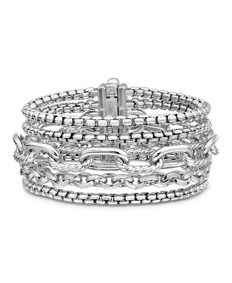 From the Chain Collection. David Yurmans multi-row bracelet features an array of mixed sterling silver chains. Sterling silver Foldover clasp Imported SIZE Extra Small wrist circumference, 5-5.5 (12.7-14cm) Small wrist circumference, 5.5-6.0 (14-15.2cm) Medium wrist circumference, 6.0-6.5 (15.2-16.5cm) Large wrist circumference, 6.5-7.0 (16.5-17.8cm) Extra Large wrist circumference, 7.0-7.5 (17.8-19cm) Please note: If you are between sizes, please opt for the larger size. ABOUT THE BRAND David, a sculptor, and his wife, Sybil, a painter, launched their innovative jewelry brand in 1980 in New York City. Since then, the American design house has pioneered cutting-edge collections - from its iconic combination of sterling silver and diamonds to signature pinky rings. Today, with their son Evan, the Yurmans continue to deliver timeless pieces inspired by nature, art, ancient symbols and Manhattans stunning architecture. Lsd Jewelry - David Yurman > David Yurman > Saks Fifth Avenue > Barneys. David Yurman. Color: Silver. Size: Medium.