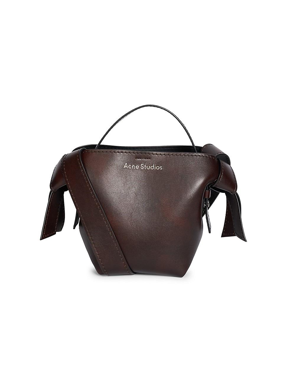 Inspired by traditional Japanese obi sashes, Acne Studios Musubi Mini shoulder bag is crafted of leather in Italy. Top handle Shoulder strap Snap-button closure Leather Lining: leather Made in Italy SIZE About 8.5W x 8H x 6D ABOUT THE BRAND An acronym for Ambition to Create Novel Expression, founder Jonny Johansson started Stockholm-based Acne Studios as a collective inspired by art and youth culture. Starting with raw denim jeans-a signature item-the label advanced into casual wear, giving off-duty looks its stamp of minimal-cool. Handbags - European Collection Hdba > Acne Studios > Saks Fifth Avenue > Barneys. Acne Studios. Color: Dark Brown.