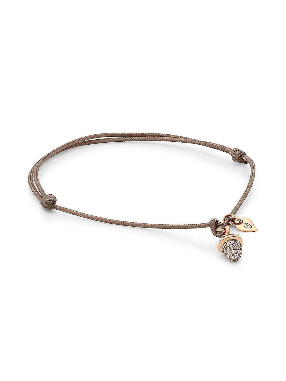 Bohemian adjustable cord bracelet with a diamond-pav acorn-shaped pendant and classic drop-shaped charm in 18K rose gold. White brilliant-cut diamonds, 0.22 tcw Diamond color: G Diamond clarity: SI Nylon cord 18K rose gold Adjustable knot closure Made in Germany SIZE Length, about 5.5-7.87 Diameter, about 1.77-3.14. Fine Jewelry - Designer Jewelry A > Tamara Comolli > Saks Fifth Avenue > Barneys. Tamara Comolli. Color: Rose Gold.
