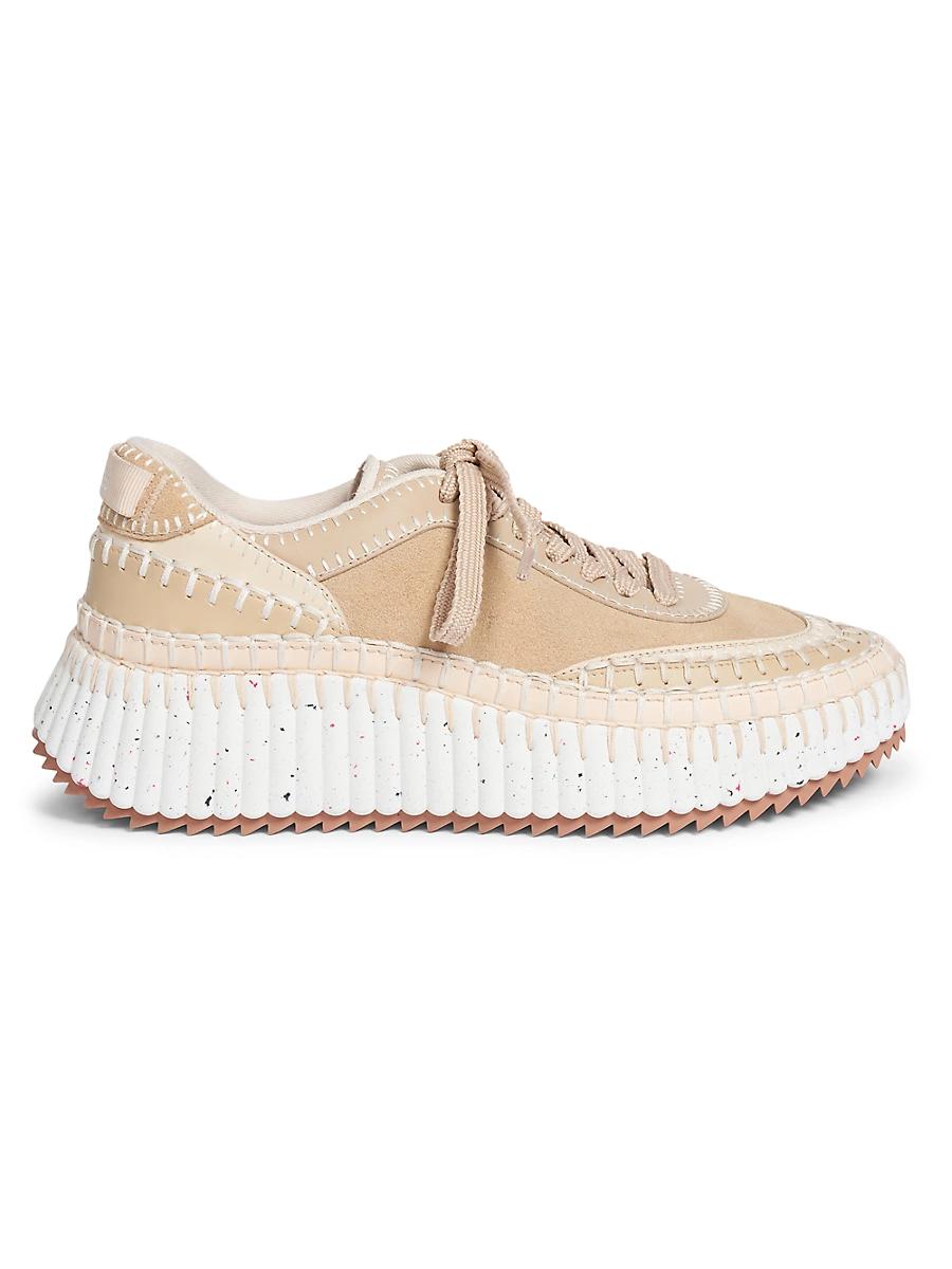 Chlos Nama low-top sneakers are a lightweight style crafted of suede and leather. Round toe Lace-up style Suede/leather upper Ethylene vinyl acetate/rubber sole Imported ABOUT THE BRAND In 1952, founder Gaby Aghion established Chlo as an alternative to couture, and to appeal to the aspirations and empowerment of women. The label is now led by Creative Director Gabriela Hearst, who furthers its signature aesthetic of cool, French-girl style. Womens Shoes - Chloe Womens Shoes > Chlo > Saks Fifth Avenue > Barneys. Chlo. Color: Blossom Beige. Size: 5.