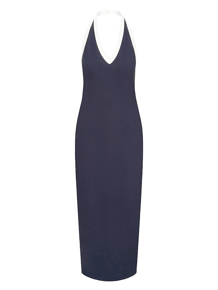 The Naomi halterneck maxi dress by Staud is cut in a bodycon silhouette showcasing contrast detailing at the neckline. Halterneck Sleeveless Pulls over 68% rayon/27% nylon/5% spandex Dry clean Imported SIZE & FIT About 58 from shoulder to hem Model measurements: 510 tall Model is wearing a US size Small. Contemporary Sportswear - Contemporary Collections > Staud > Saks Fifth Avenue > Barneys. Staud. Color: Navy White. Size: Small.