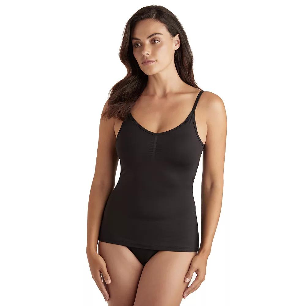 Featuring wireless foam cups so there is no need for a bra, this women's Naomi & Nicole cami smooths and shapes and can even be worn as outerwear. Featuring wireless foam cups so there is no need for a bra, this women's Naomi & Nicole cami smooths and shapes and can even be worn as outerwear. Firm control level Wireless Tag free Adjustable convertible straps can be worn crisscrossed Under arm panels smooths bulges Light compression flattens the tummy and shapes the waist Style no. 7508FIT & SIZING PulloverFABRIC & CARE Nylon, elastane, spandex Machine wash Imported Size: Large. Color: Black. Gender: female. Age Group: adult.