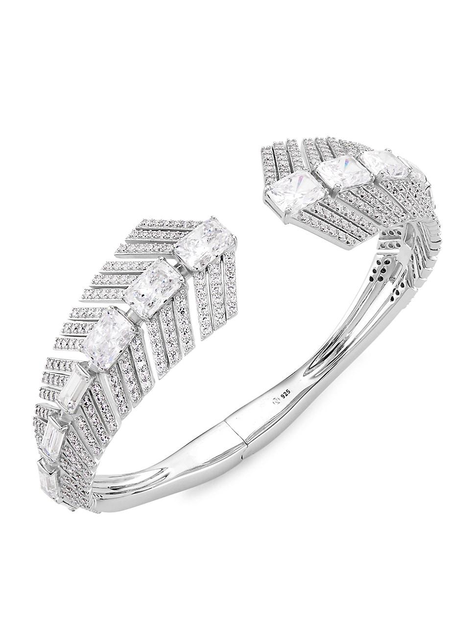From the Naomi Collection. Crafted of rhodium-plated sterling silver, Adriana Orsinis deco-inspired cuff sparkles with emerald-cut and baguette cubic zirconia. Cubic zirconia Rhodium-plated sterling silver Slips on Imported SIZE About 2.25W x 1.75L. Fashion Jewelry - Adriana Orsini > Adriana Orsini > Saks Fifth Avenue > Barneys. Adriana Orsini. Color: Silver.