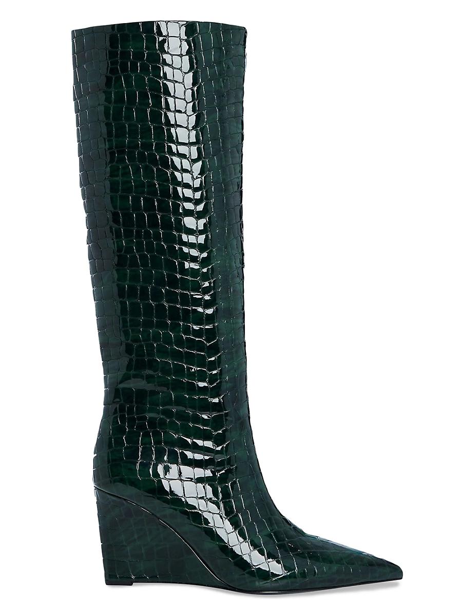 Elevate your style with the Natassa Wedge Boots. Designed for a night out, this knee high boot features a sleek pointed toe and a trendy wedge heel. The croc print adds a touch of sophistication and edge to any outfit. Make a statement and step out in luxury with the Natassa Wedge Boots. 100% Leather 90mm / 3.5 heel height Imported. Lsd Shoes - Shoes Lsd Mp > Retrofte > Saks Fifth Avenue > Barneys. Retrofte. Color: Pine Croco. Size: 6.5.