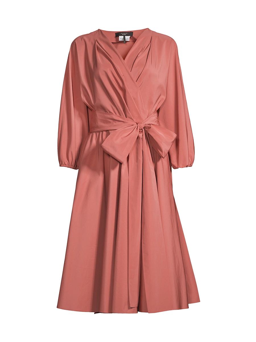 Weekend Max Maras Negozi dress flaunts a wrap silhouette and self-tie bow waist for a cinched shape. V-neck Three-quarter-length sleeves, elasticized cuffs Self-tie waist Pulls on 56% polyester/44% cotton Machine wash Imported SIZE & FIT Model measurements: 510 tall Model is wearing a US size 4 ABOUT THE BRAND Max Maras history of impeccable tailoring dates back to 1850, when founder Achille Maramottis great grandmother owned a fashion atelier in Italy. Since its official launch in 1951, incredible craftsmanship has remained an integral part of the labels heritage-from its timeless silhouettes in luxe fabrics to sharp suiting, lush wrap coats and sleek accessories. Modern Collections - Weekend By Max Mara > Weekend Max Mara > Saks Fifth Avenue > Barneys. Weekend Max Mara. Color: Terracotta. Size: 10.
