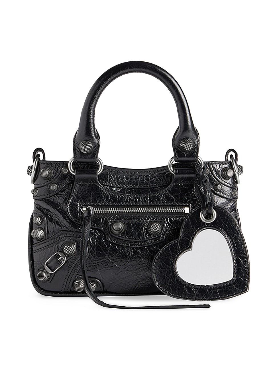 Arena lambskin Tote bag Two handles Aged-silver hardware Zipped closure with knotted leather puller Front zipped pocket with knotted leather puller 1 main compartment 1 removable heart mirror Tone-on-tone Balenciaga logo debossed on mirror Cotton canvas lining Wipe with a soft cloth Made in Italy SIZE Dimensions: L7.9 x H4.9 x W0.6 in. Adjustable and removable crossbody strap (drop: 20.5 in.). Lsd Handbags - Balenciaga > Balenciaga > Saks Fifth Avenue > Barneys. Balenciaga. Color: Black.