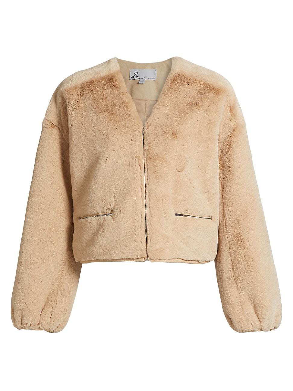 Crafted of luxe faux fur, this zip-front Neptune jacket from dh New York is designed with a V-neck, long sleeves, and side pockets. V-neck Long sleeves Side zip pockets Front zip closure 100% polyester Machine wash Imported SIZE & FIT About 21 from shoulder to hem Model measurements: 510 tall Model is wearing a US size Small. Contemporary Sportswear - Trend > Dh New York > Saks Fifth Avenue > Barneys. dh New York. Color: Chai. Size: Small.