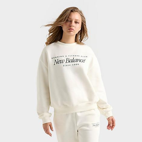 Size & Fit Standard fit is relaxed Slightly dropped shoulders Product Features Supersoft and warm active lifestyle sweatshirt with satiny embroidered and screen-printed NB Fitness and Running Club branding Classic crewneck construction Ribbed cuffs ad hem for stretchy, stay-put fit Material percentages may vary. Check the label for actual content. Machine wash The Womens New Balance Logo Crewneck Sweatshirt is imported. Get your day in motion and gear up in this Womens New Balance Logo Crewneck Sweatshirt. Crafted from cozy fabric, this essential sweatshirt feels homey with slightly dropped shoulders and satiny embroidered NB Fitness and Running Club branding that brings balance to your archival athletic aesthetic. Size: XS. Color: Off-White. Gender: female. Age Group: adult. Pattern: Embroidered/Printed/Check. New Balance Womens Logo Crewneck Sweatshirt in Off-White/Salt Size XS Satin