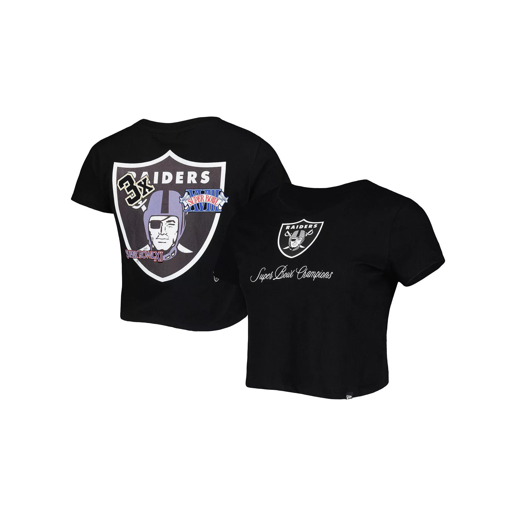 Add some fresh Las Vegas Raiders gear to your wardrobe with this Historic Champs T-shirt from New Era. It features team graphics to emphasize the postseason success of your Las Vegas Raiders. Plus, the cropped hem adds style points to this comfy cotton tee.Add some fresh Las Vegas Raiders gear to your wardrobe with this Historic Champs T-shirt from New Era. It features team graphics to emphasize the postseason success of your Las Vegas Raiders. Plus, the cropped hem adds style points to this comfy cotton tee.PRODUCT FEATURESBrand: New EraImportedScreen print graphicsCropped hemOfficially licensedShort sleeveMachine wash, tumble dry lowMaterial: 100% Cotton Color: LVR BLACK. Gender: female. Age Group: adult.