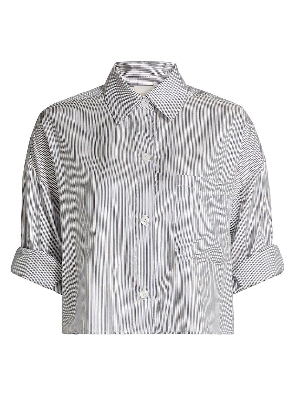 Crafted of striped metallic silk, TWPs Next shirt is styled with a spread collar, elbow-length sleeves with rolled cuffs, and button-front closure. Spread collar Elbow-length sleeves, rolled cuffs Chest patch pocket Straight hem Button-front closure 97% silk/3% metallic fiber Dry clean Made in USA of Italian fabric SIZE & FIT About: 19.5 from shoulder to hem Model measurements: 510 tall Model is wearing a US size 4 ABOUT THE BRAND New York-based label TWP offers modern, effortless takes on go-to wardrobe staples. On a mission to democratize luxury, founder Trish Westcoat Pound, of Haute Hippie fame, focuses on high-quality details and subtle-yet-alluring silhouettes to create elevated, everyday pieces-all made in the U.S. with fabrics sourced from Italy. Contemporary Sportswear - Contemporary Lifestyle > Twp > Saks Fifth Avenue > Barneys. TWP. Color: Ivory Indigo Gold. Size: Medium.
