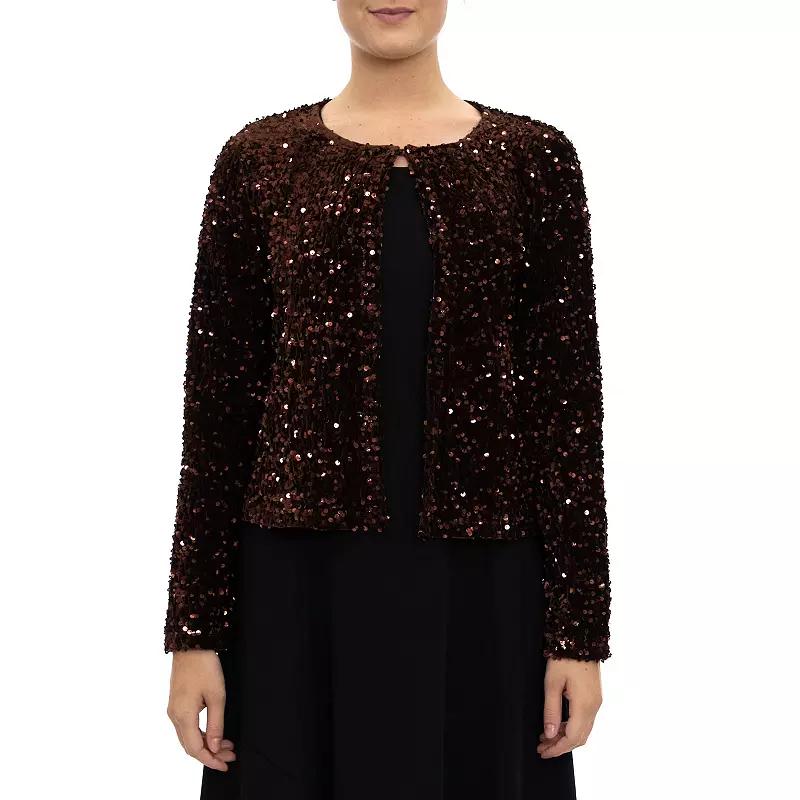 Get an extra pretty look with this womens shrug from Nina Leonard. Get an extra pretty look with this womens shrug from Nina Leonard.Click on this WOMENS GUIDE to find the perfect fit and more! Sequined designFIT & SIZING 21.5-in. length from shoulder to hemFABRIC & CARE Polyester, spandex Machine wash - Delicate Imported Size: X Large. Color: Med Brown. Gender: female. Age Group: adult.