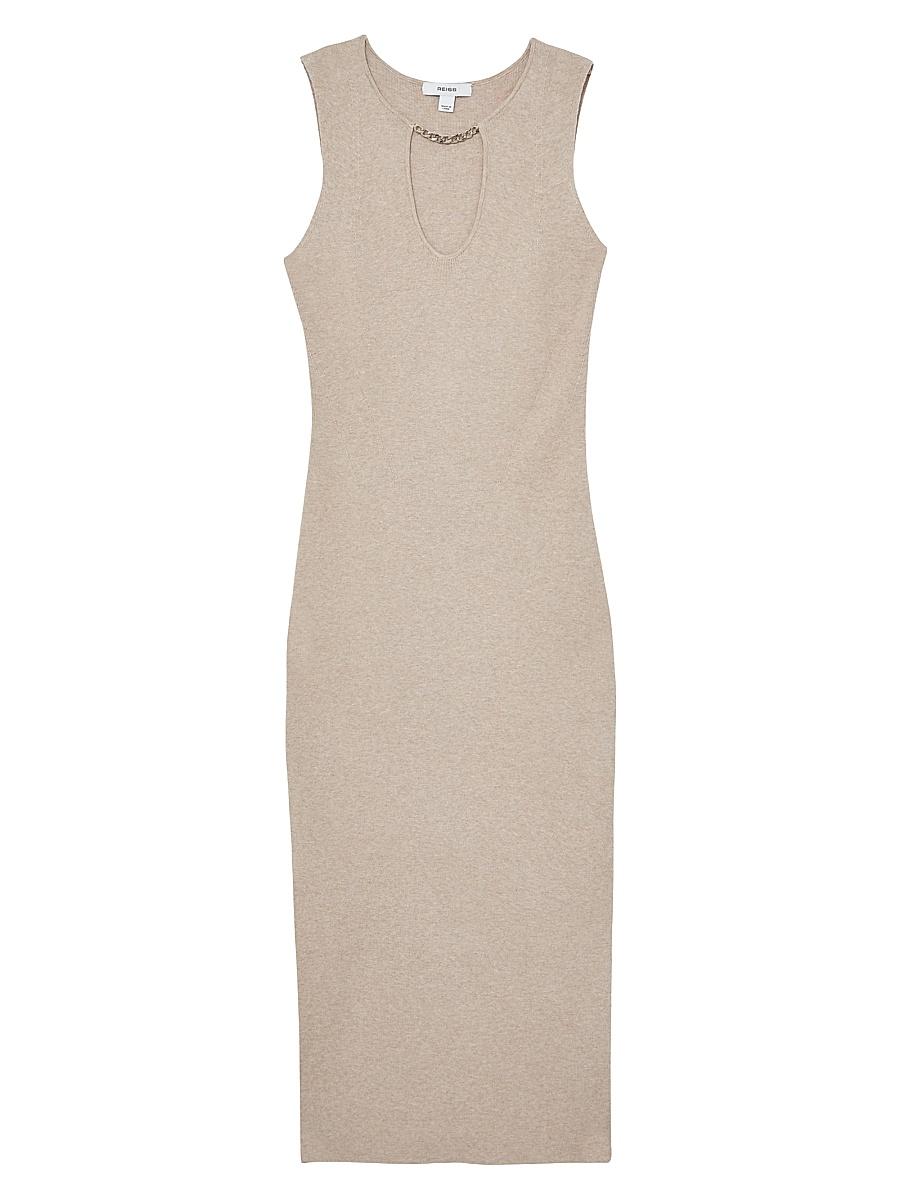 This Nola sleeveless midi-dress from Reiss is designed with a front cut out, a chain detail at the neck, and side slits. Jewel neck Sleeveless Front cut out Side slits Pulls over 59% viscose/24% polyester/16% polyamide/1% elastane Hand wash Imported SIZE & FIT Model measurements: 510 tall Model is wearing a US size Small. Modern Collections - Modern Trend > Reiss > Saks Fifth Avenue. Reiss. Color: Neutral. Size: XL.