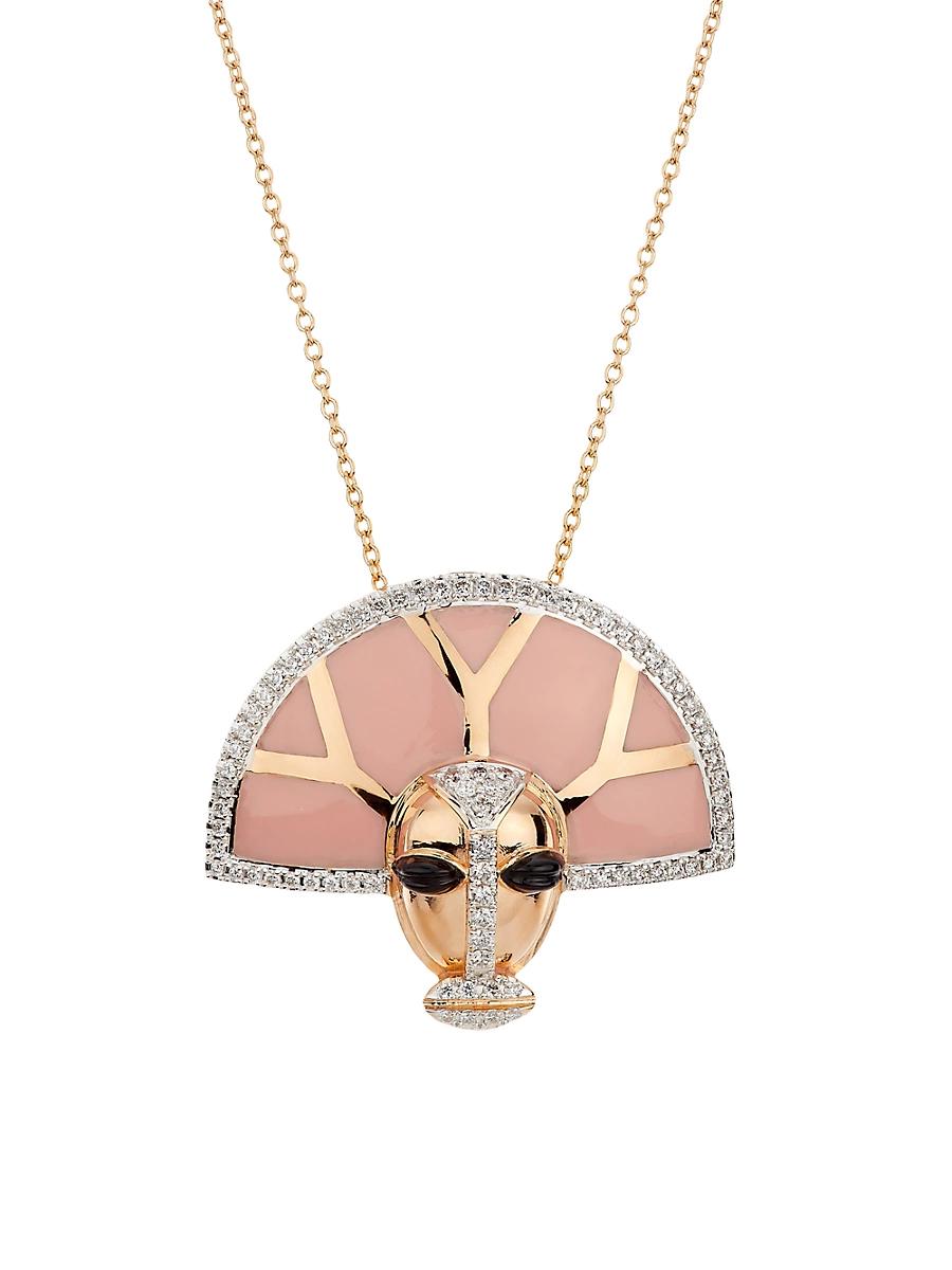 From the Nomoli Totem Masks Collection. Inspired by tribal West-African masks, Matturi Fine Jewelrys pendant necklace is crafted of 18K yellow gold accented with pink enamel and shimmering pav diamonds. Diamonds, 0.55 tcw Enamel 18K yellow gold Lobster clasp Made in UK SIZE Chain: adjustable 16-18L Pendant: about 1.5W x 1L. Fine Jewelry - Designer Jewelry C > Matturi Fine Jewelry > Saks Fifth Avenue > Barneys. Matturi Fine Jewelry. Color: Yellow Gold.