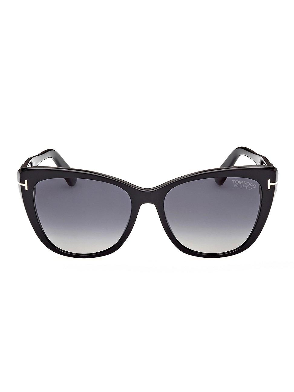 Tom Fords Nora sunglasses flaunt a timeless cat-eye frame. Made in Italy, this sleek pair is highlighted with a signature T logo on the sides. 100% UV protection Polarized lenses Case and cleaning cloth included Plastic Made in Italy SIZE 57mm lens width 17mm bridge width 140mm temple length ABOUT THE BRAND After 10 years of serving as the Creative Director for several international luxury fashion houses, Tom Ford launched his own line of optical frames, sunglasses and beauty in 2005. The following year he debuted menswear, and in 2010, womens ready-to-wear. His sleek, tailored aesthetic has since catapulted him to mega-brand status. Soft Accessories - Sunglasses > Tom Ford > Saks Fifth Avenue > Barneys. TOM FORD. Color: Shiny Black.