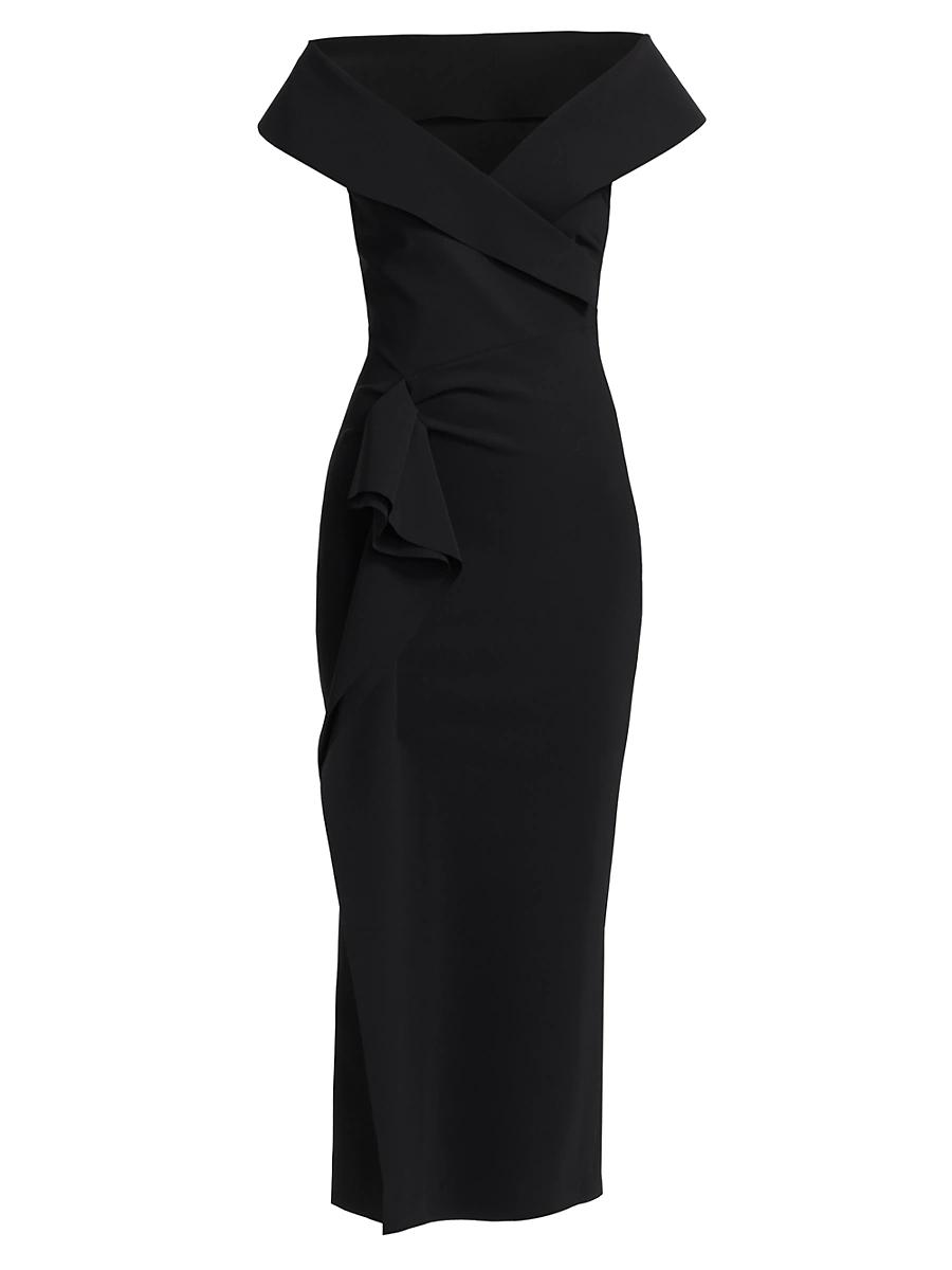 Crafted in Italy, Chiara Boni La Petite Robes sleek Norshana sheath-silhouette midi-length cocktail dress showcases a folded portrait neckline and charming skirt ruffle. Portrait neck Sleeveless Skirt ruffle Back zip closure 72% polyamide/28% elastane Dry clean Made in Italy SIZE & FIT About 52.25 from shoulder to hem Model measurements: 510 tall Model is wearing a US size 4 ABOUT THE BRAND Self-taught designer Chiara Boni began her career creating ready-to-wear for several Italian labels before launching Chiara Boni La Petite Robe in 2007. With a focus on flattering the female form, her elegant and versatile styles have gained a loyal following. Dress Collections - La Petite Robe Di Chiara > Chiara Boni La Petite Robe > Saks Fifth Avenue > Barneys. Chiara Boni La Petite Robe. Color: Black. Size: 16.