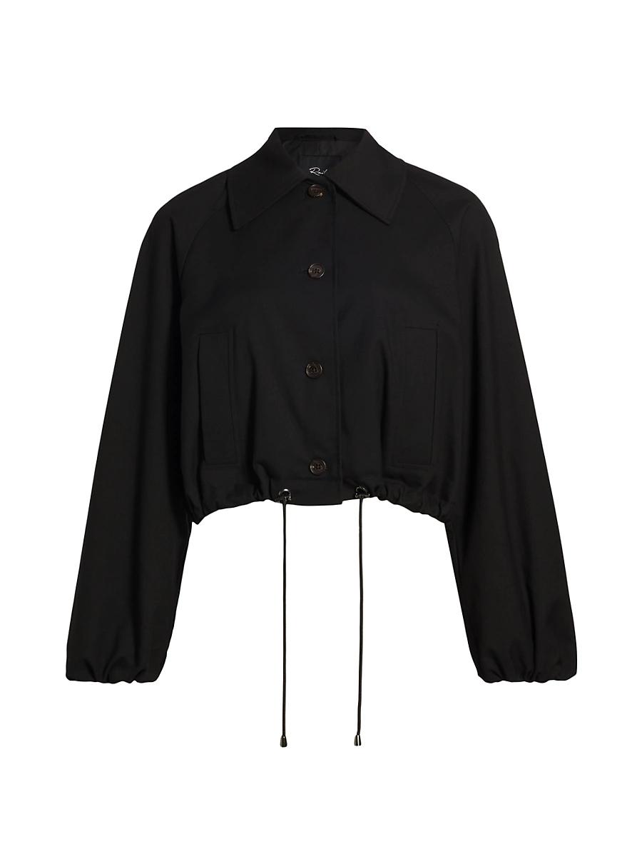 The North twill jacket from Rails boasts a cropped silhouette and adjustable drawcord waist. Long raglan sleeves finish the buttoned look. Point collar Long sleeves, elasticized cuffs Side welt pockets Back storm flap Button-front closure 65% polyester/33% viscose/2% spandex Dry clean Imported SIZE & FIT About 21 from shoulder to hem Model measurements: 510 tall Model is wearing a US size Small. Contemporary Sportswear - Casual Separates > Rails > Saks Fifth Avenue > Barneys. Rails. Color: Black Twill. Size: Medium.
