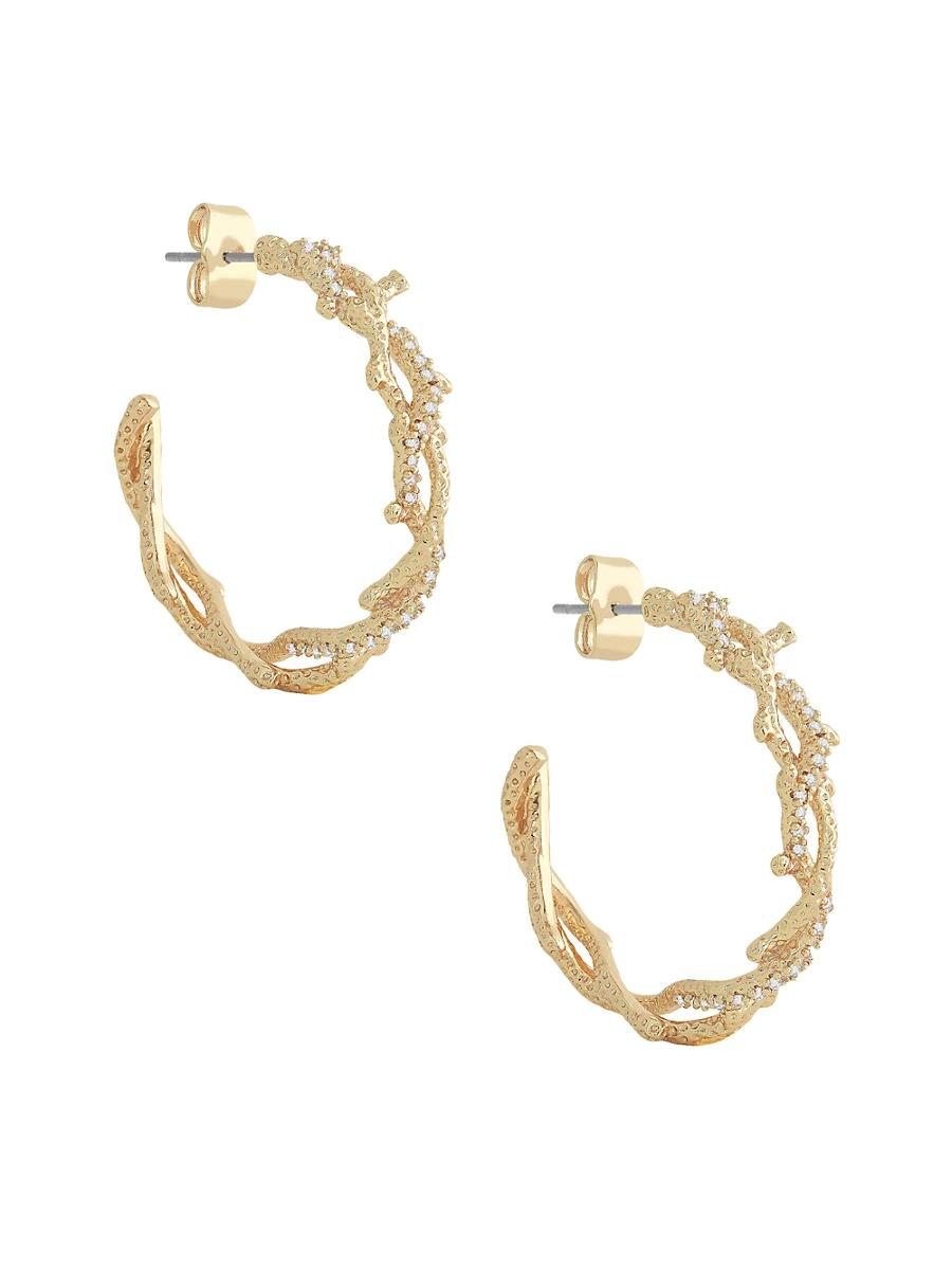 From the Ocean Collection. Inspired by nature, these Coral hoop earrings by Anabel Aram are crafted of 18K gold-plate brass. This sculpted piece features a twisting brand motif. Cubic zirconia 18K gold-plated brass Post back Imported SIZE About 1 L. Fashion Jewelry - Trend Jewelry > Anabel Aram > Saks Fifth Avenue > Barneys. Anabel Aram. Color: Gold.