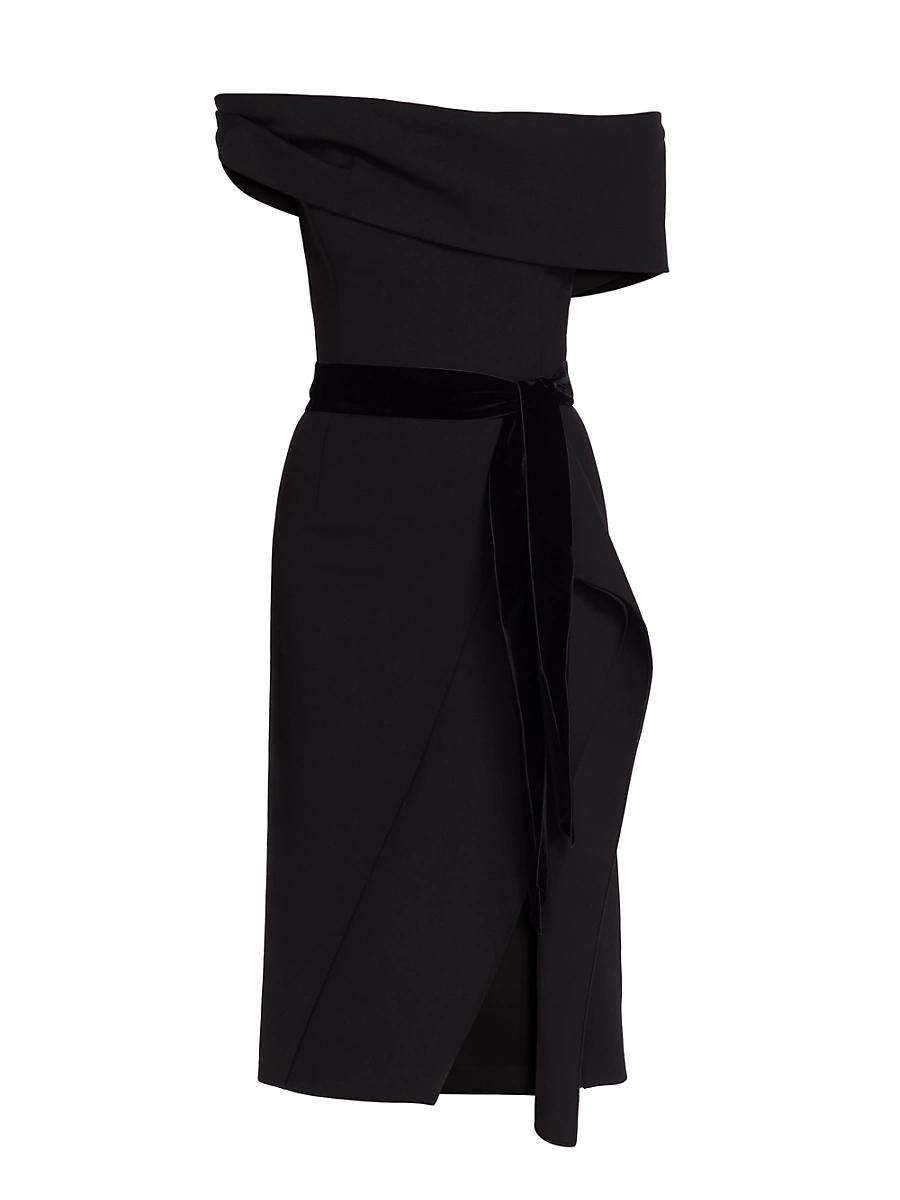 Crafted of Italian wool, Oscar de la Rentas sophisticated cocktail dress flaunts a draped off-the-shoulder neckline and velvet self-tie at the waist. Off-the-shoulder neck Short sleeves Self-tie waist Concealed back zip closure 94% virgin wool/5% elastane/1% nylon Lining: 100% silk Dry clean Made in Italy SIZE & FIT Model measurements: 510 tall Model is wearing a US size 4 ABOUT THE BRAND After working for some of fashions greatest designers, Oscar de la Renta started his own line in 1965. He was an instant hit, thanks to his penchant for romantic silhouettes in vibrant colors and prints. His iconic legacy lives on through Creative Directors Fernando Garcia and Laura Kims stunning vision for the brands ready-to-wear and accessories. Designer Evening - Oscar De La Renta > Oscar De La Renta > Saks Fifth Avenue > Barneys. Oscar de la Renta. Color: Black. Size: 10.