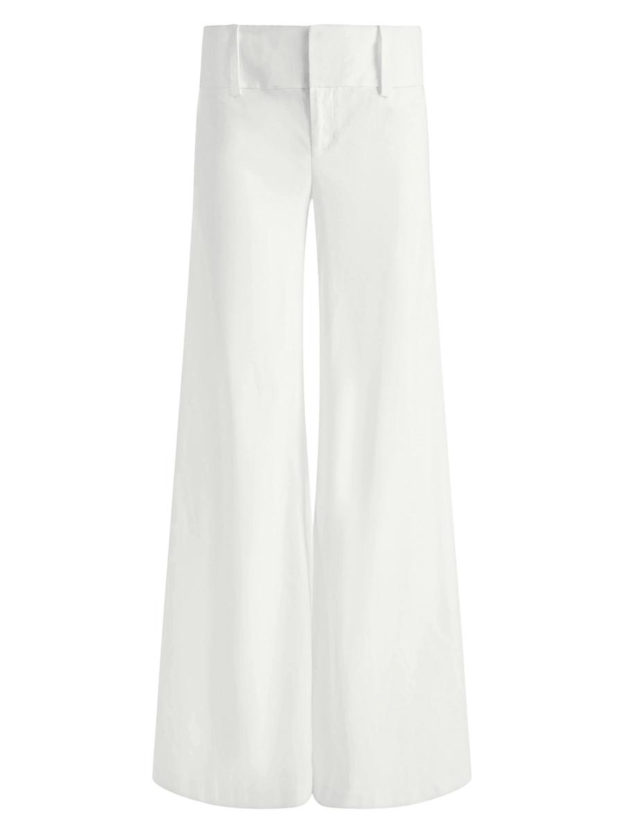 Crafted of a light linen blend, Alice + Olivias Olivia pants are designed with a sweeping wide-leg silhouette, low-rise, and a flared hem. Banded waist, belt loops Zip fly, hook-and-bar closure 56% linen/43% viscose/1% elastane Lining: 100% polyester Dry clean Imported SIZE & FIT Rise: about 9.25 Inseam: about 34.5 Leg opening: about 31 Model Measurements: 510 tall Model is wearing a US size 4 ABOUT THE BRAND Founder Stacey Bendet has been embracing bold color, eclectic prints and an overall passion for whimsy since launching Alice + Olivia in 2002. From party-ready dresses to statement tops and everything in between, shes created a playful and overtly feminine aesthetic thats uniquely her own. Contemporary Sportswear - Alice + Olivia > Alice + Olivia > Saks Fifth Avenue > Barneys. Alice + Olivia. Color: Off White. Size: 10.