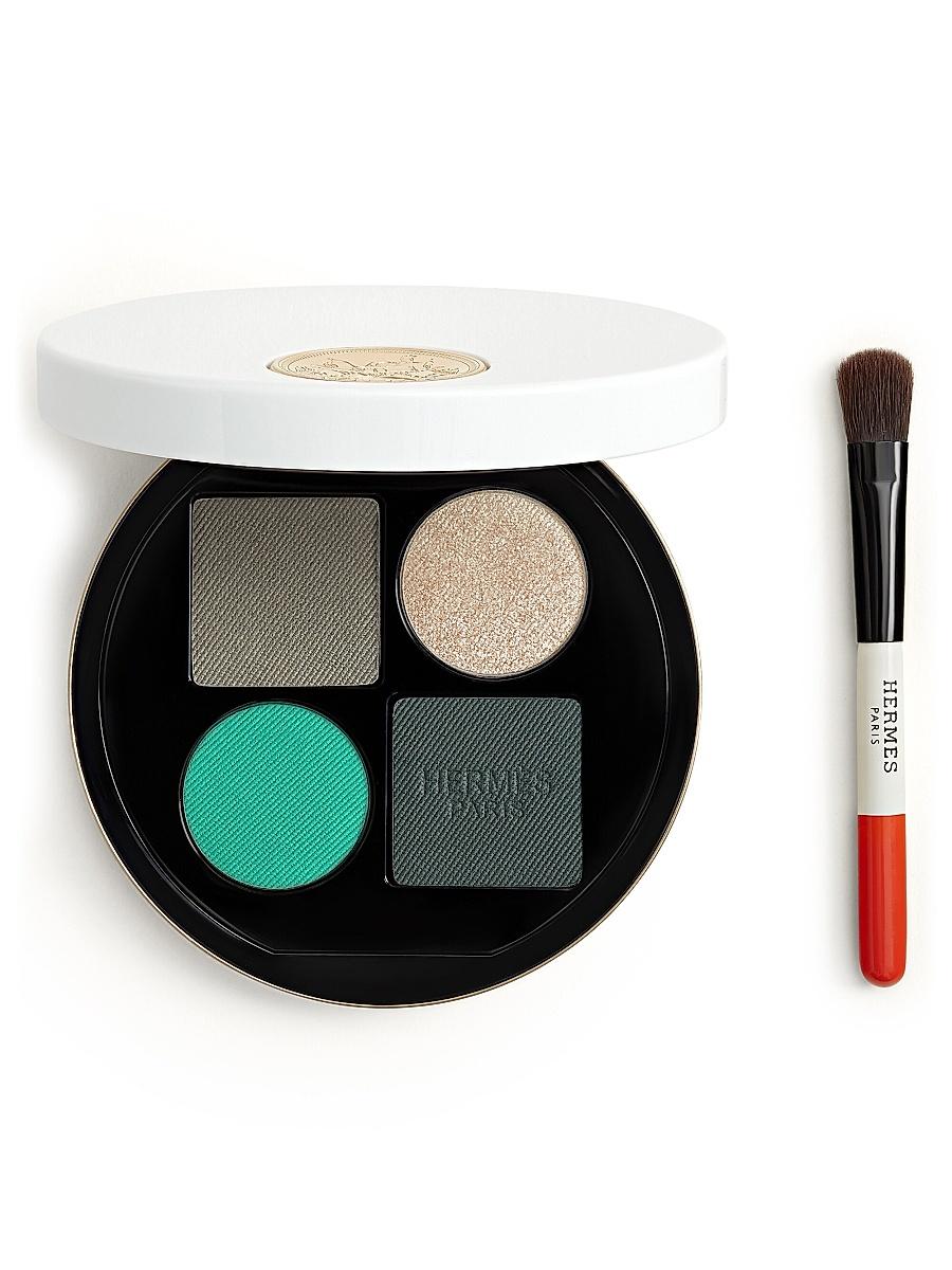 WHAT IT IS A variety of color palettes offer various avenues of expression for the eyes, creating a natural, intense, or sophisticated look. Each quartet is composed of a graduated trio of powders complemented by a fourth, bold, and unexpected shade. All can be used individually or combined to create a subtle, seamless blend of shadows. Designed by Pierre Hardy, this quartet of eyeshadows plays with geometric shapes and echoes the Bauhaus movement. Its round case is protected by a canvas drawstr