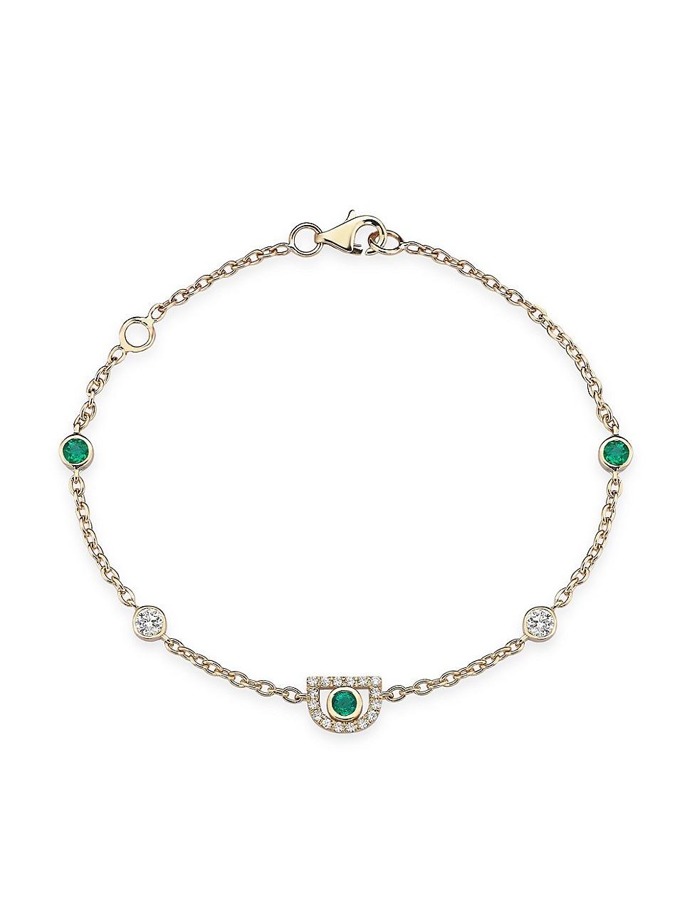From the Orbits Collection. SIM and ROZs 14K-yellow-gold Comet bracelet sparkles with vibrant emeralds and diamonds. Founded in 2018 by designer Sim Atli, the Istanbul-based jewelry label is acclaimed for its modern pieces inspired by the beauty and energy of the cosmos. Diamonds, 0.41 tcw Diamond color grade: F-G Diamond clarity grade: VS2 Emeralds, 0.36 tcw 14K yellow gold Lobster clasp Imported SIZE Adjustable length, about 6-7 Charm width, about 0.5. Fashion Jewelry - Semi Prec Coll C > Sim And Roz > Saks Fifth Avenue > Barneys. Sim and Roz. Color: Green.