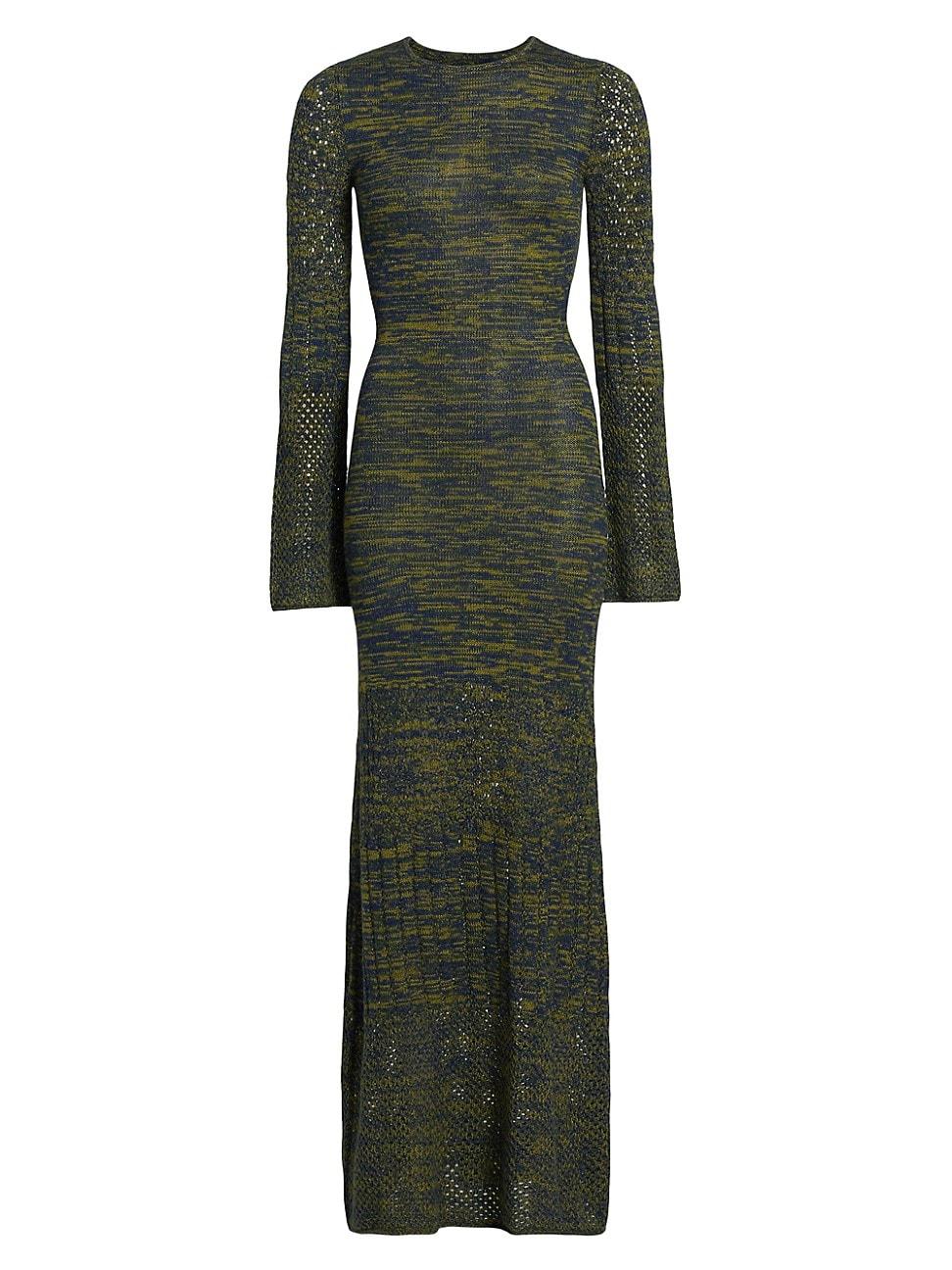 From the Origen Collection. Crafted of alpaca, this Murga maxi dress from Escvdo is designed in a body-con silhouette, featuring bell sleeves and an open back. Round neck Long bell sleeves Open back Pulls over 100% alpaca Dry clean Imported SIZE & FIT About 54 from shoulder to hem Model measurements: 510 tall Model is wearing a US size Small. Designer Lifestyle - Designer Lifestyle Multi > Escvdo > Saks Fifth Avenue > Barneys. Escvdo. Color: Olive Blues. Size: Small.