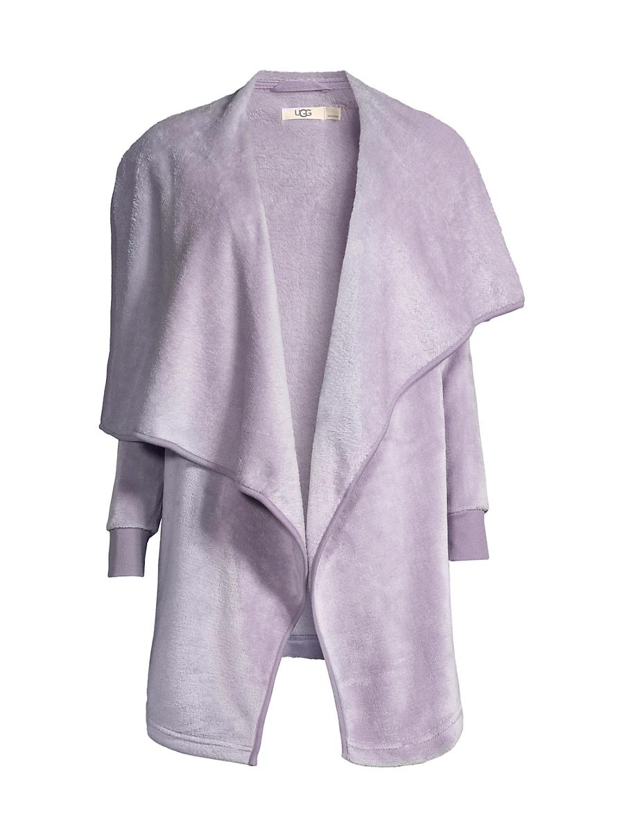 An open front cardigan defined by a draped open-front design. Open front Long sleeves Slip-on styling Polyester Machine wash Imported SIZE & FIT About 31 from shoulder to hem Model measurements: 510 tall Model is wearing a US size Small ABOUT THE BRAND In 1978, designer Brian Smith came to California from Australia with sheepskin boots in hopes that the relaxed culture would be the perfect fit for his brand-and he was right. UGG was a hit with surfers and skiers, and by the `90s, with the world. More than just soft, cozy boots, slippers and sandals, UGG has become a lifestyle brand with the addition of clothing, accessories and home dcor. Lingerie - Modern Sleepwear > Ugg > Saks Fifth Avenue > Barneys. UGG. Color: Twilight. Size: XS.