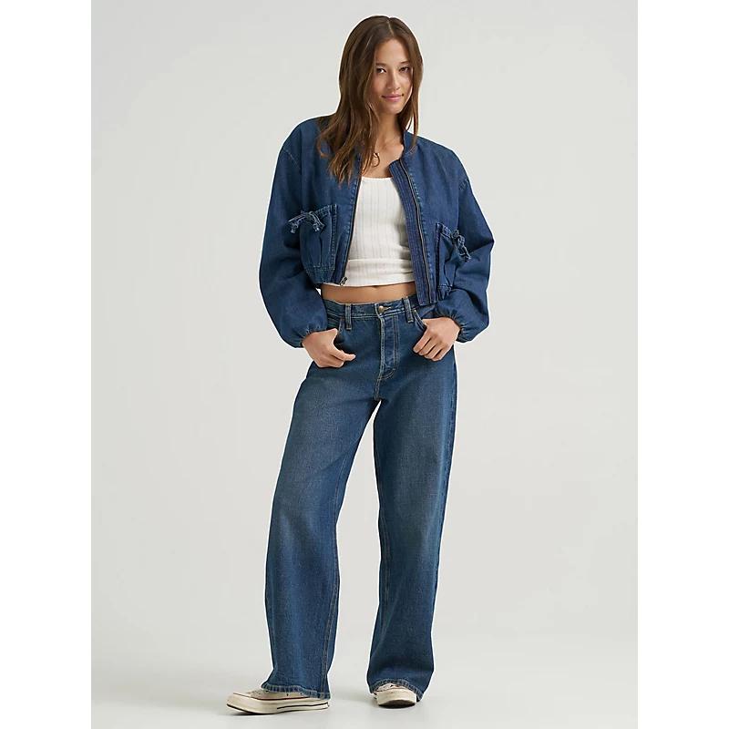 When it comes to layering, a good bomber always fits right. This bomber-style jacket comes with the classic puffy sleeves and stretchy collar, plus a set of adjustable denim bows on the pockets for some extra personality and versatility. Made from 100% cotton in a 9.2 oz weight, it’s a sturdy jacket built for many cold days to come. 100% Cotton. Mid Pacific. M.