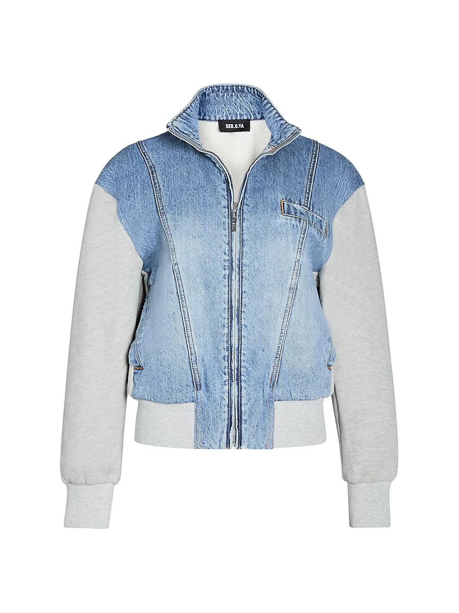 Zip-up denim jacket with terry sleeves and waistband. Pair with our Payton Terry Denim Pants for a matching set look. Denim: 100% Cotton, Terry: 55% Polyester, 45% Cotton Model is 510 wearing size S Imported. Lsd Rtw - Womens Rtw Lsd Mp > Ser.o.ya > Saks Fifth Avenue > Barneys. Ser.o.ya. Color: River. Size: Large.
