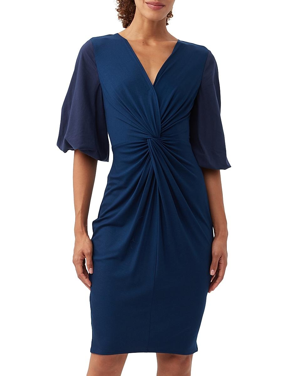 Crafted of a draped jersey, Trina Turks Palm Coast sheath dress showcases a plunging V-neck and elbow-length sleeves. V-neck Elbow-length sleeves Pulls over 96% viscose/4% elastane Contrast: 100% cotton Dry clean Made in USA SIZE & FIT About 42 from shoulder to hem Model measurements: 510 tall Model is wearing a US size Small. Modern Collections - Branded Separates > Trina Turk > Saks Fifth Avenue > Barneys. Trina Turk. Color: Ink. Size: XL.