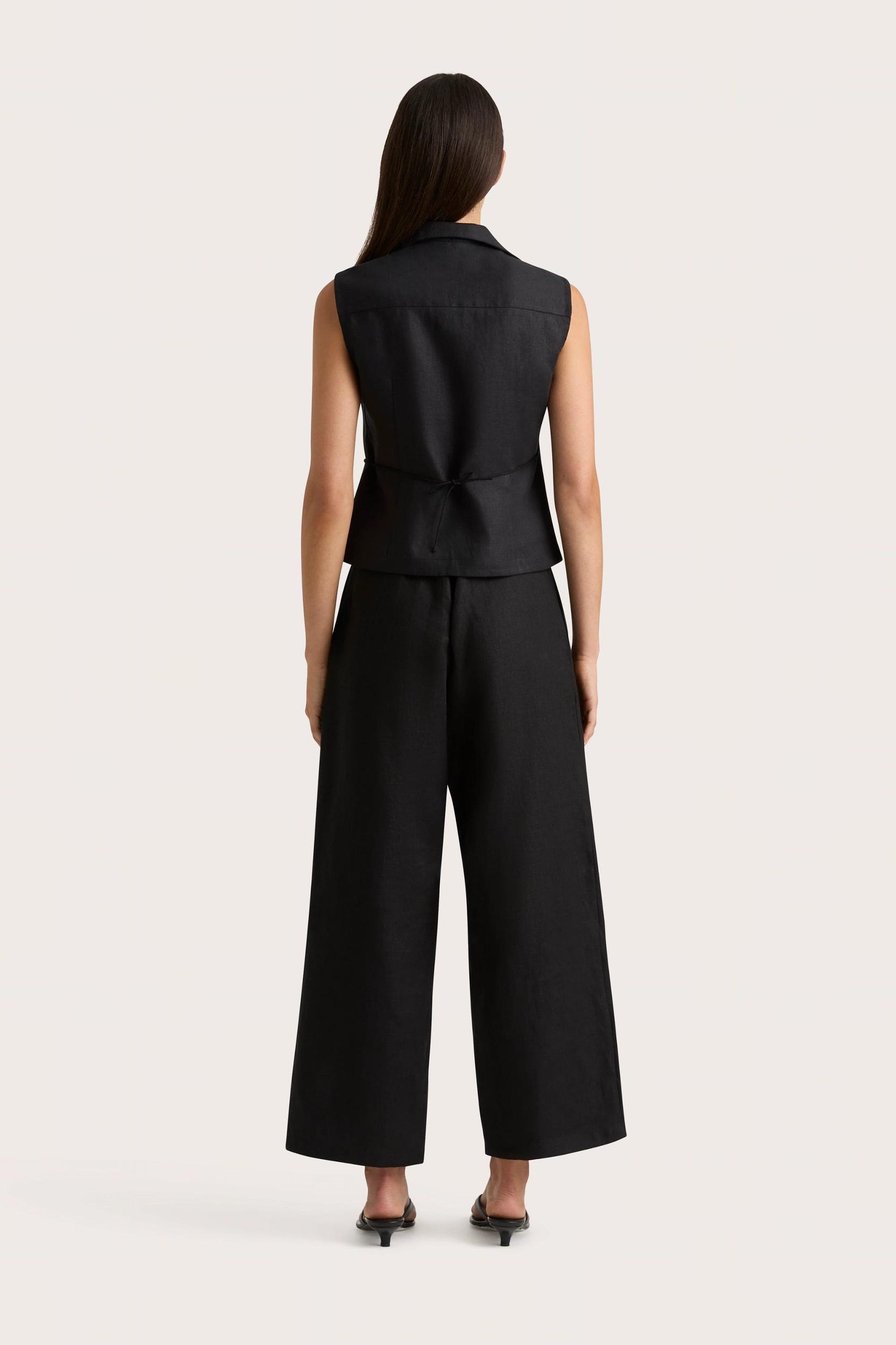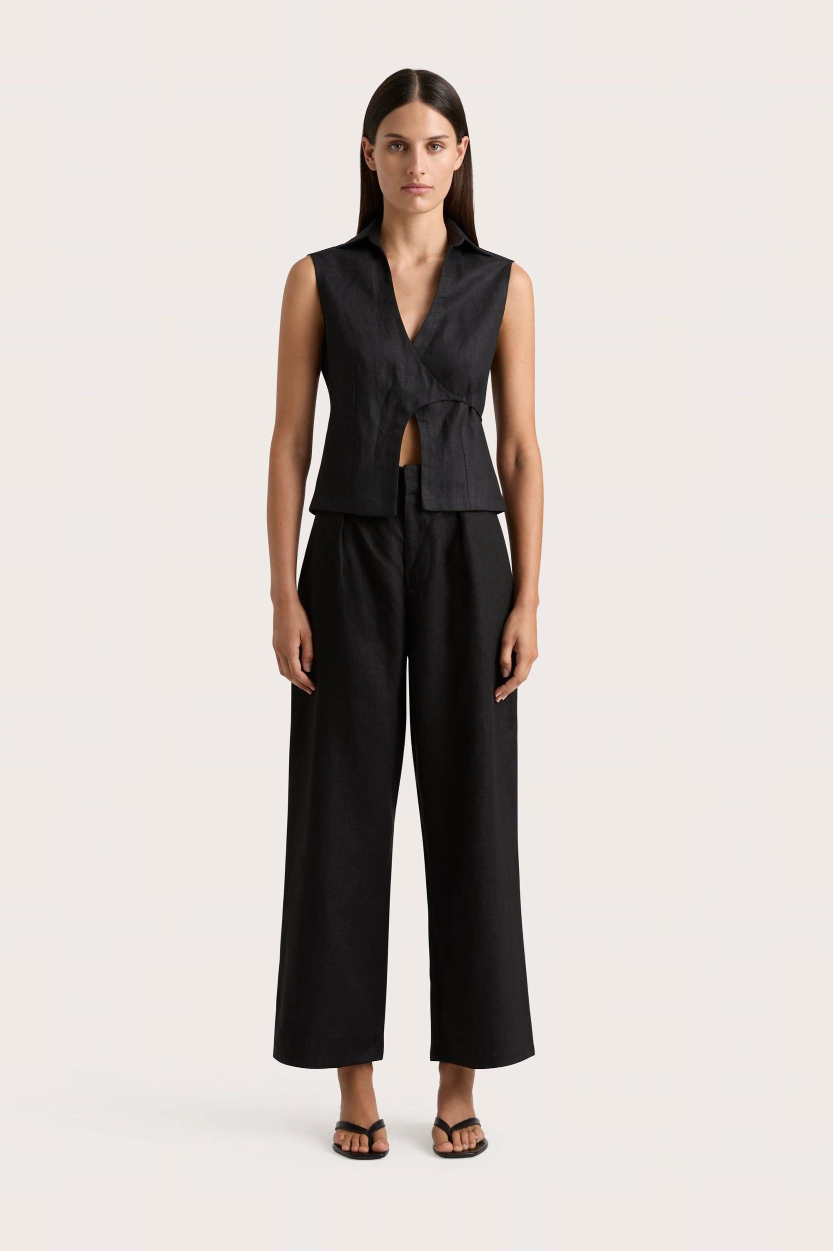 Thoughtfully tailored in European Flax® linen and hand-dyed in timeless black, the Ida Pants are a linen essential you'll reach for time and time again. It features a high-rise waist, straight leg silhouette, front pleats, side pockets and a wide waistband with an elasticated panel for comfort. Pair it with the Antibes Top for a sunshine-ready set.