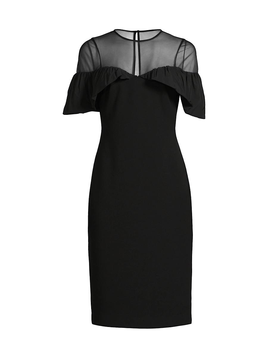 This midi-dress from Aidan Mattox is crafted of bonded crepe and designed with short sleeves, a round neck, and sheer paneling. Round neck Short sleeves Back zip closure 95% polyester/5% elastane Lining: 100% polyester Dry clean Imported SIZE & FIT About 42 from shoulder to hem Model measurements: 510 tall Model is wearing a US size Small. Dress Collections - Aidan Mattox > Aidan Mattox > Saks Fifth Avenue > Barneys. Aidan Mattox. Color: Black. Size: 14.