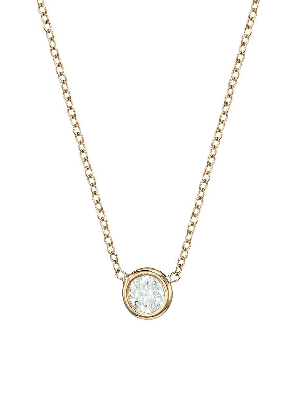 A single white diamond sparkles as it floats delicately from a gold chain. Diamonds, 0.2 tcw Diamond color, F-G Diamond clarity, SI2 14K yellow gold Spring ring closure Made in USA SIZE Adjustable length, about 16-17-18 Pendant width, about 0.2. Fashion Jewelry - Fashion Designer > Zo Chicco > Saks Fifth Avenue > Barneys. Zo Chicco. Color: Gold. Size: 18.