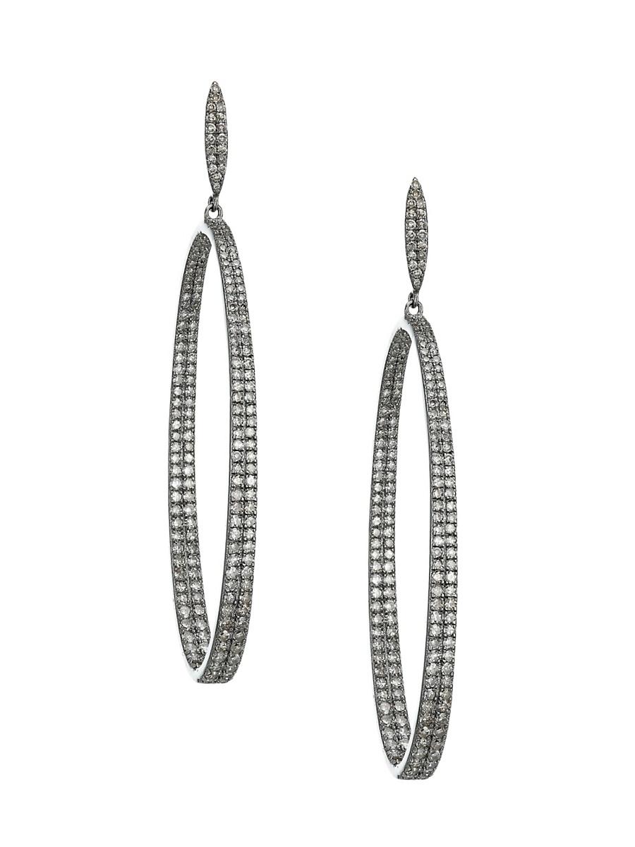 Diamond embellishments lend a glistening effect to these hoop earrings. Black rhodium silver Diamonds, 2.6 tcw Diamond clarity, SI-1 Diamond color, I/J Post back Imported SIZE Drop, about 2.5. Fashion Jewelry - Semi Prec Coll C > Nina Gilin > Saks Fifth Avenue > Barneys. Nina Gilin. Color: Silvertone.