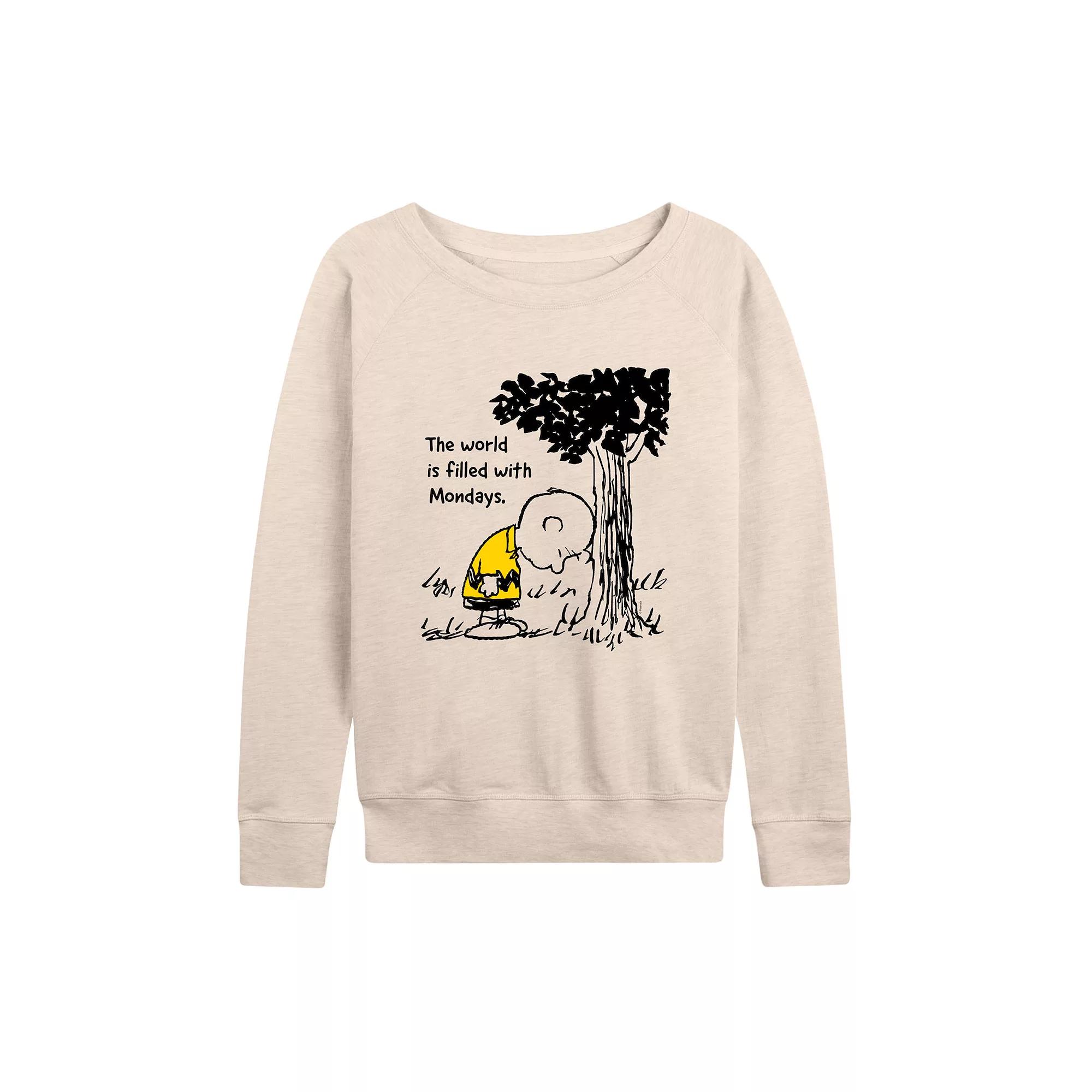 She will love showing off her style with this Womens Peanuts Charlie Brown World With Mondays Slouchy Graphic Sweatshirt. FEATURES Long sleeves ScoopneckFABRIC & CARE Cotton/Polyester Machine wash Imported Size: Small. Color: Beig/Khaki. Gender: female. Age Group: kids.