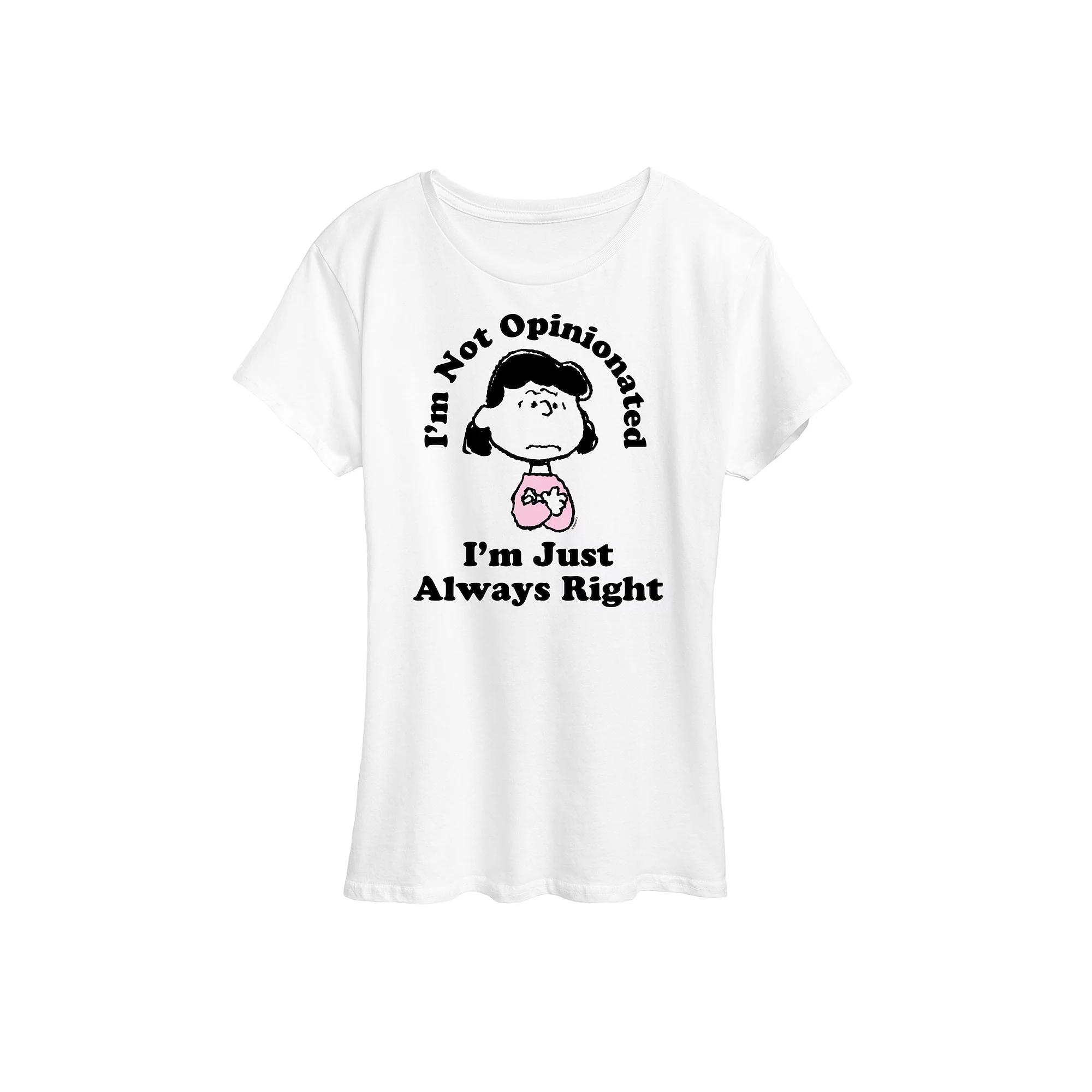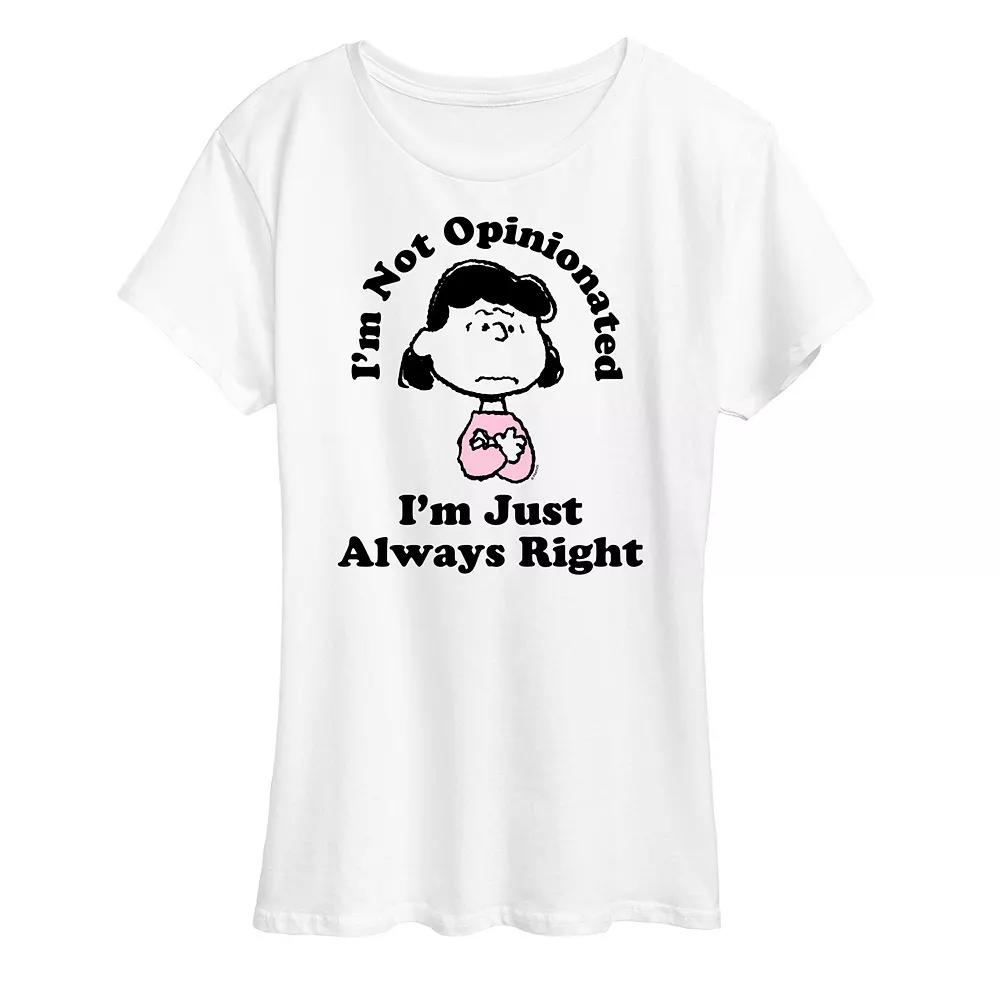 She will love showing off her style with this Womens Peanuts Lucy Im Always Right Graphic Tee. FEATURES Short sleeves CrewneckFABRIC & CARE Solid Color: Cotton ; Heather Colors: Cotton/Polyester Machine wash Imported Size: Large. Color: White. Gender: female. Age Group: adult.