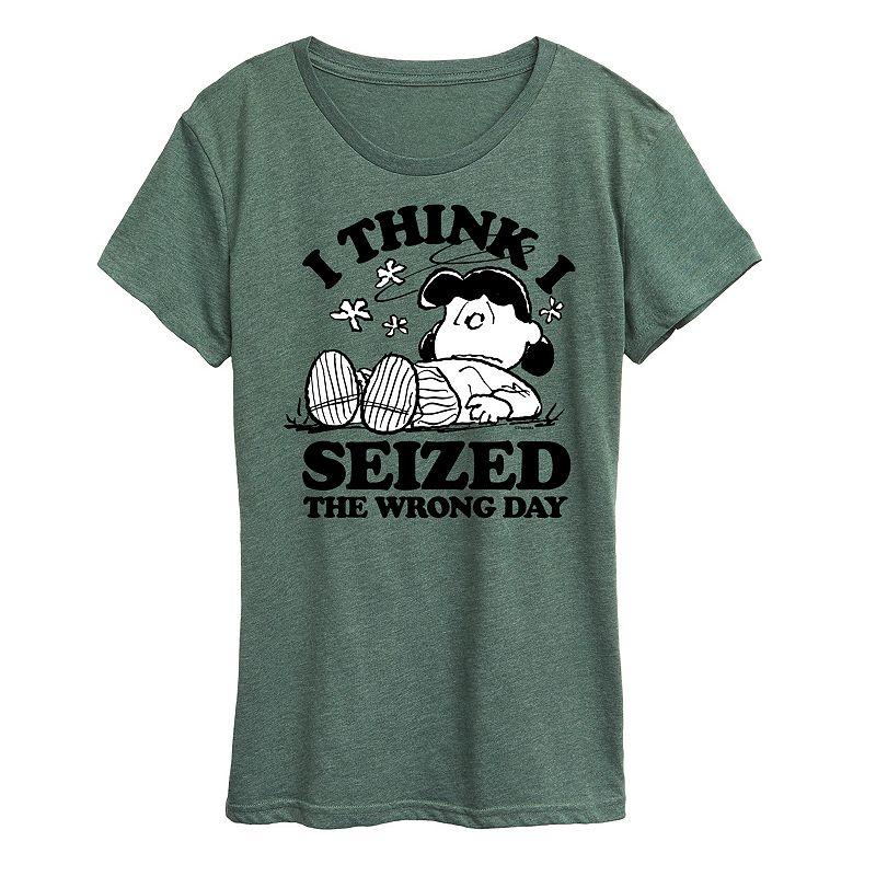 She will love showing off her style with this Womens Peanuts Lucy Seized The Wrong Day Graphic Tee. FEATURES Short sleeves CrewneckFABRIC & CARE Solid Color: Cotton ; Heather Colors: Cotton/Polyester Machine wash Imported Size: Small. Color: Med Grey. Gender: female. Age Group: adult.