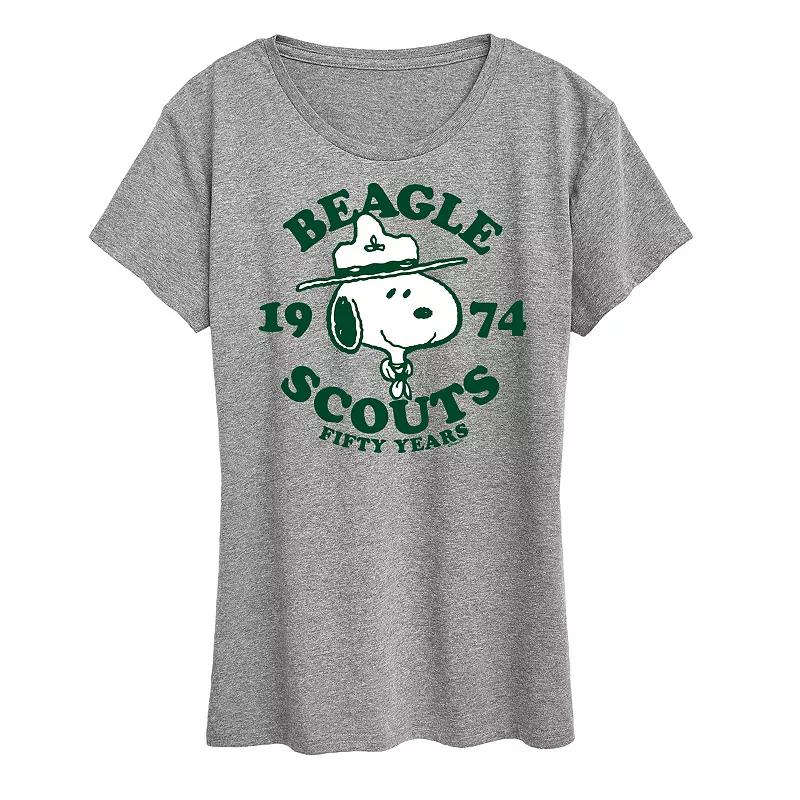 She will love showing off her style with this Womens Peanuts Snoopy Beagle Scout 50 Years Graphic Tee. FEATURES Short sleeves CrewneckFABRIC & CARE Solid Color: Cotton ; Heather Colors: Cotton/Polyester Machine wash Imported Size: X Large. Color: Med Grey. Gender: female. Age Group: adult.
