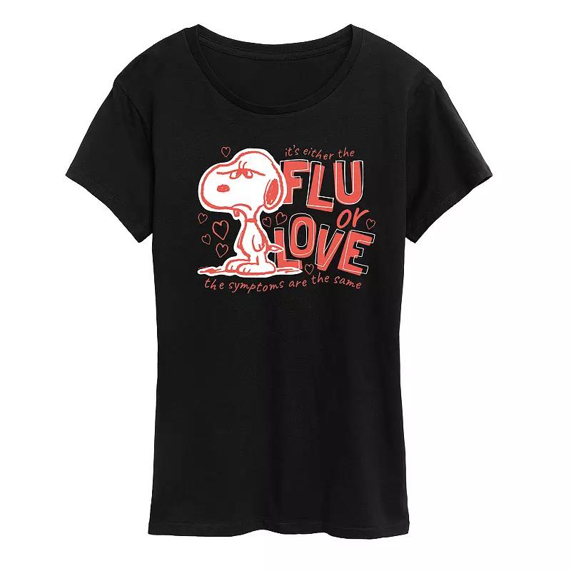 She will love showing off her style with this Womens Peanuts Snoopy Flu Or Love Graphic Tee. FEATURES Short sleeves CrewneckFABRIC & CARE Solid Color: Cotton ; Heather Colors: Cotton/Polyester Machine wash Imported Size: Large. Color: Black. Gender: female. Age Group: adult.