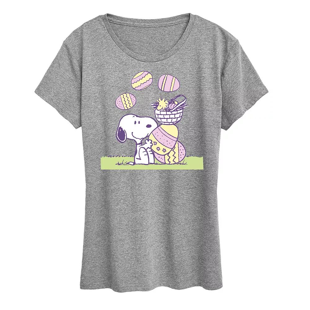 She will love showing off her style with this Womens Peanuts Snoopy & Woodstock Easter Graphic Tee. FEATURES Short sleeves CrewneckFABRIC & CARE Cotton/Polyester Machine wash Imported Size: Medium. Color: Med Grey. Gender: female. Age Group: adult.
