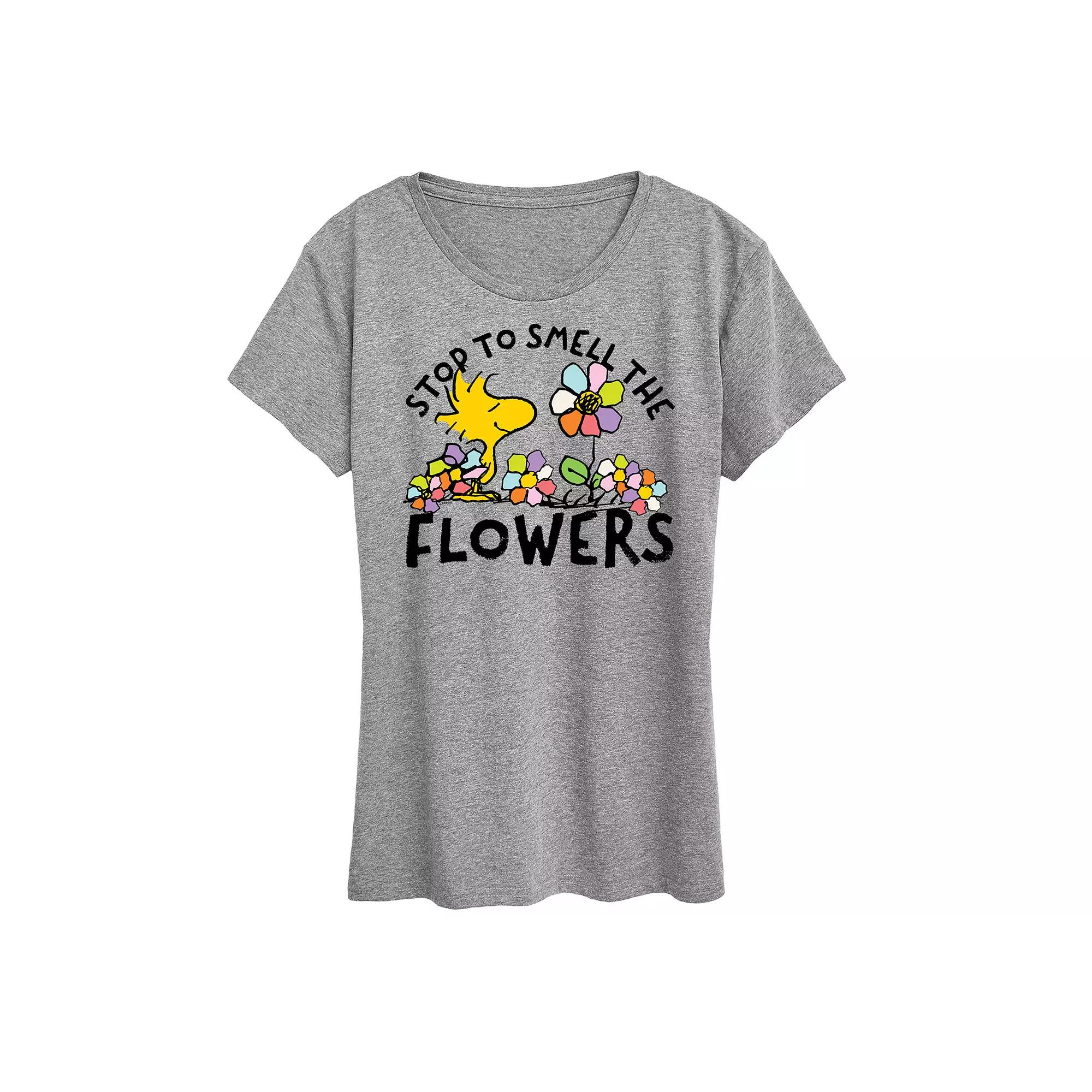 She will love showing off her style with this Womens Peanuts Woodstock Smell The Flowers Graphic Tee. FEATURES Short sleeves CrewneckFABRIC & CARE Solid Color: Cotton ; Heather Colors: Cotton/Polyester Machine wash Imported Size: Large. Color: White. Gender: female. Age Group: adult.
